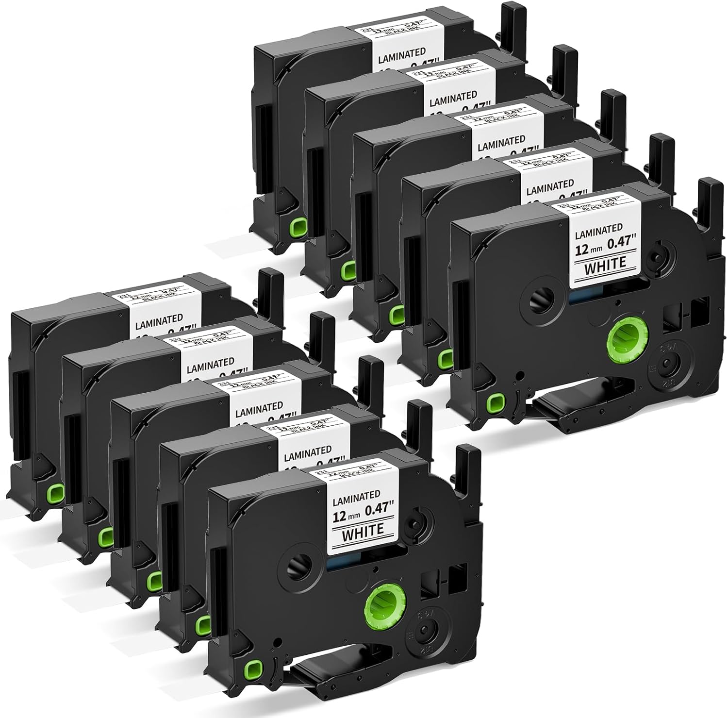 Airmall Replace for Brother Label Maker Tape TZe-231 TZe TZ Tape 12mm 0.47 Inch Laminated White TZe231 Black on White Compatible with Brother P-Touch 1/2" PT-D210 D220 H110 D400 D410 1280, 10-Pack