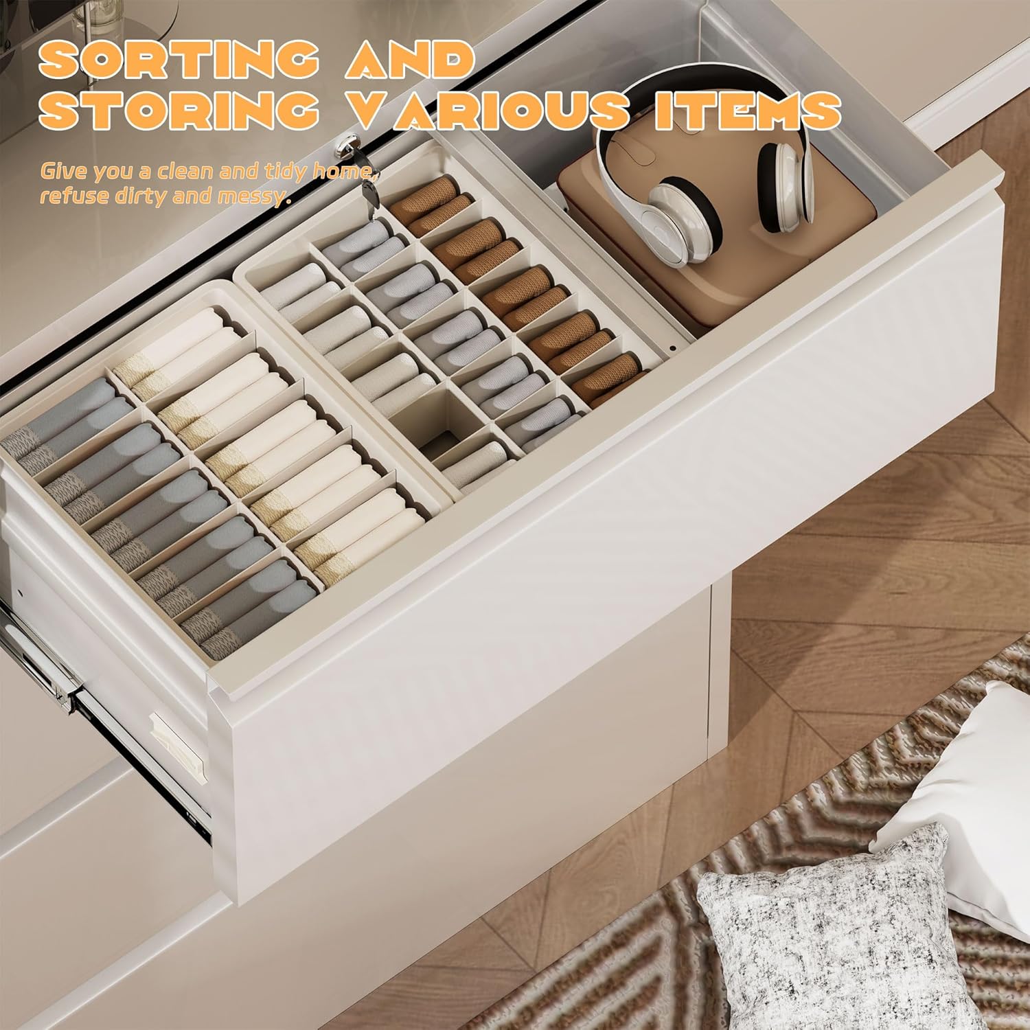 - ⤠Smooth & Quiet Operation -- The white file cabinet have smooth rolling bearing drawers, the drawers open and close effortlessly without jamming or noise. The sound produced when pulling the drawer is below 20 dB, which can create a quiet working environment for you.