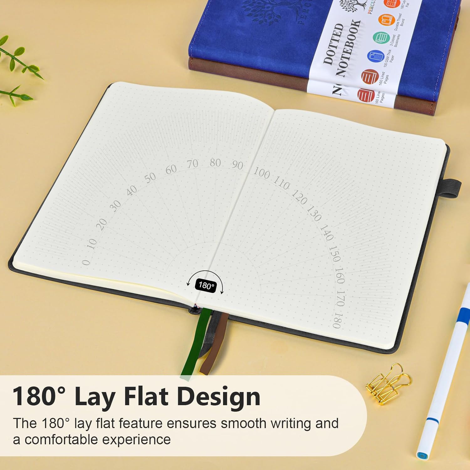 - ăSTURDY HARDCOVER & LA-FLAT DESIGNăïŒDesigned for daily use, this hardcover notebook boasts a lay-flat binding that opens 180° for effortless writing. Its professional finish suits both office desks and travel bags, while the reinforced spine ensures long-term durability.