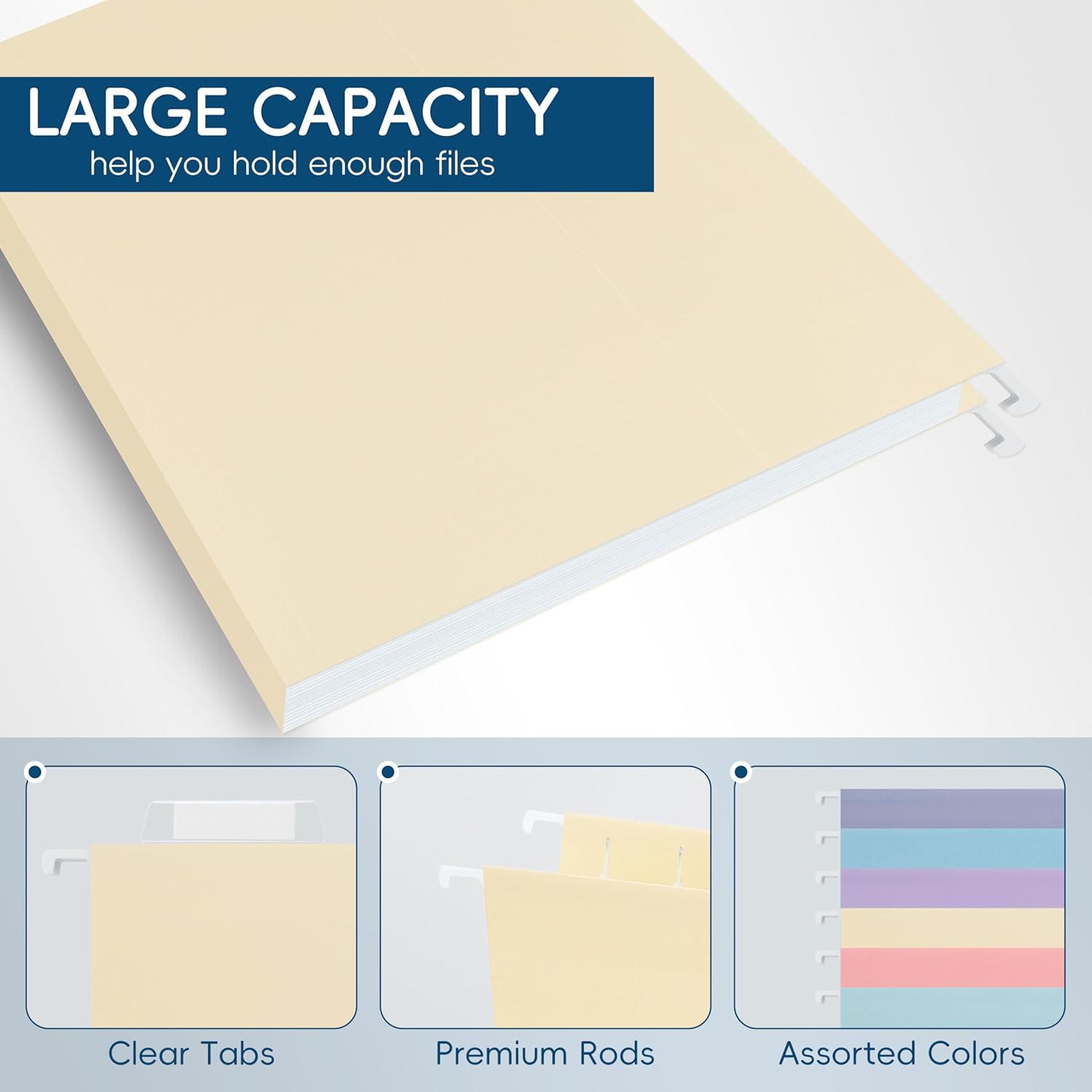 - Premium Durable Material – Crafted from sturdy, reinforced paper with metal hangers to resist bending or breaking. These reliable hanging file folders ensure long-lasting safety and stability.