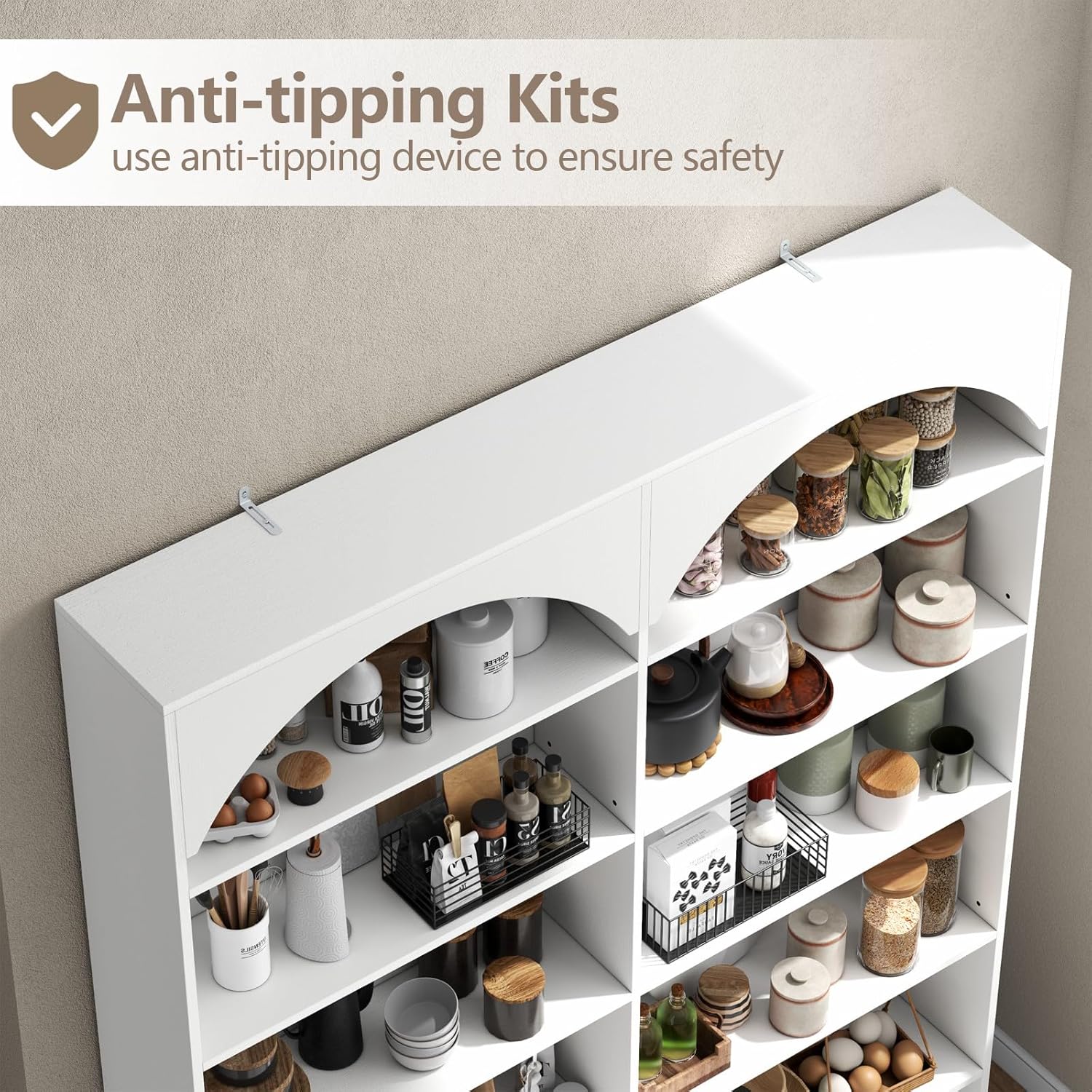 70.8’’ Tall Bookshelf and Bookcase of 2 pcs, 7-Tier Double Wide Bookcase Modern Large Open Display Shelves with Curved Baffle for Home Office Living Room (White-2pcs)