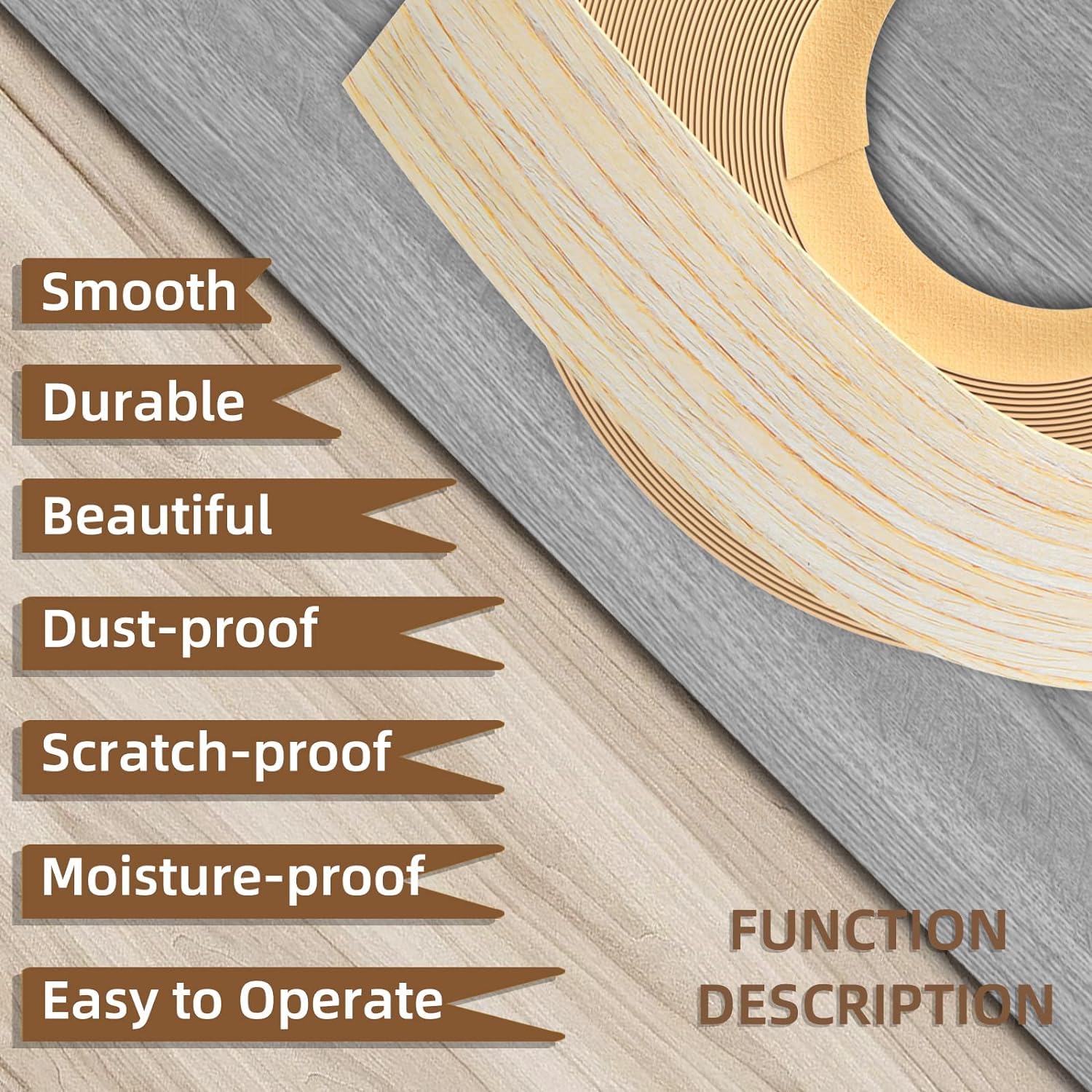 - √【WIDELY USED】- Our design is high quality & fashionable, This Edge Banding were doing market research which is matching most customer favorites. Oak Edge banding is a thin material used to seal the sides, such as plywood, particle board or MDF, increasing durability and a new look. It can update your desk, cabinet, DIY and the other furniture, the edging will give a smooth and clean surface to it.