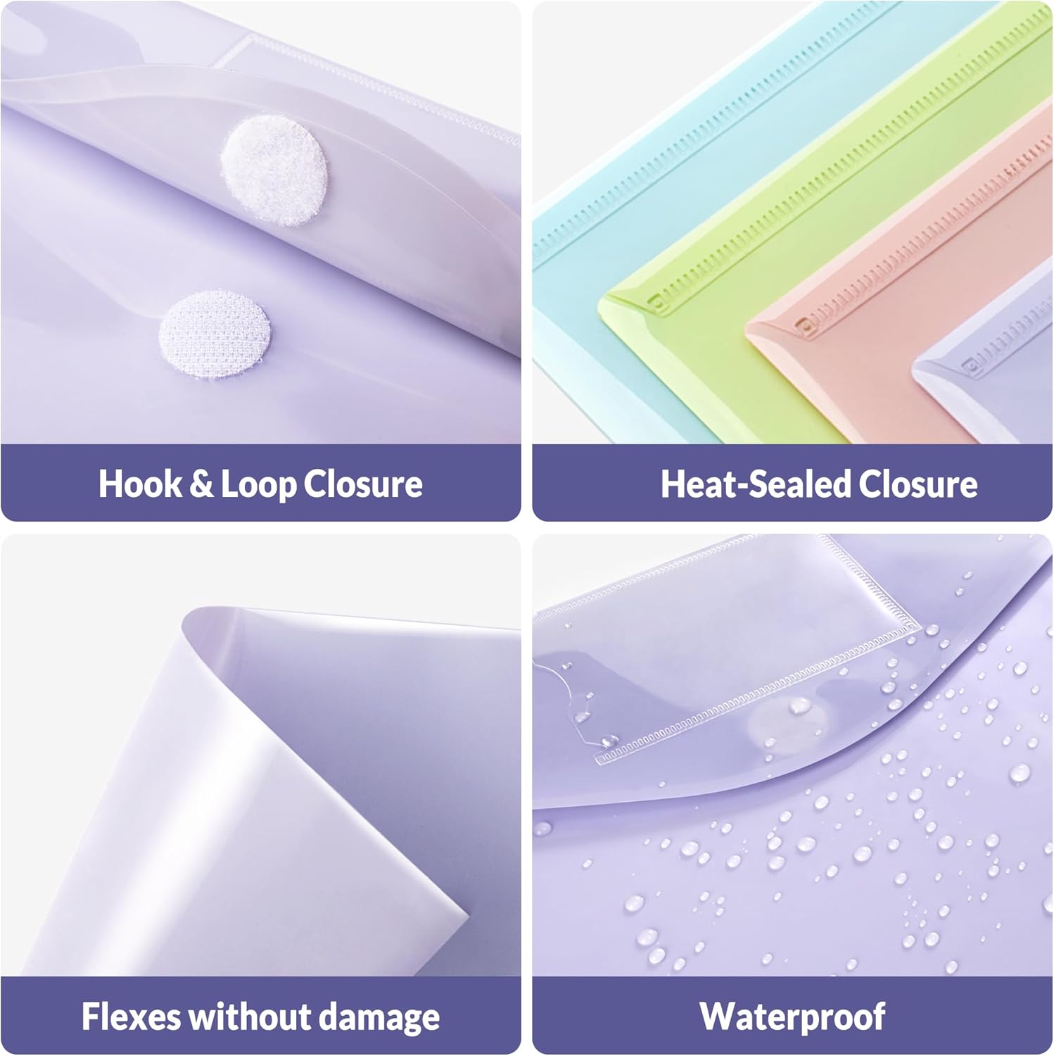 - Hook and Loop Closure & Label Pockets: Press-to-seal closure secures contents; front pocket organizes notes/tags. These reusable plastic envelopes are travel-ready, safeguarding invoices or folders for school records. A protective document folder ensuring contents remain intact.