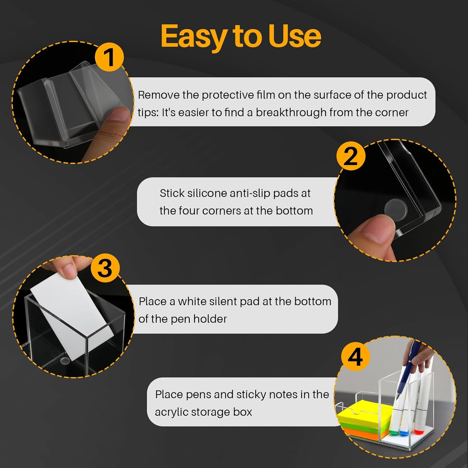 - 【Thoughtful, Quiet Details for Seamless Use】:Every detail of this acrylic pen holder is designed for convenience. A cushioned base reduces noise when placing pens and prevents ink stains for easy cleaning. The sticky note holder compartment features a flat-slot design, making it effortless to grab even the last sheet—no more struggling