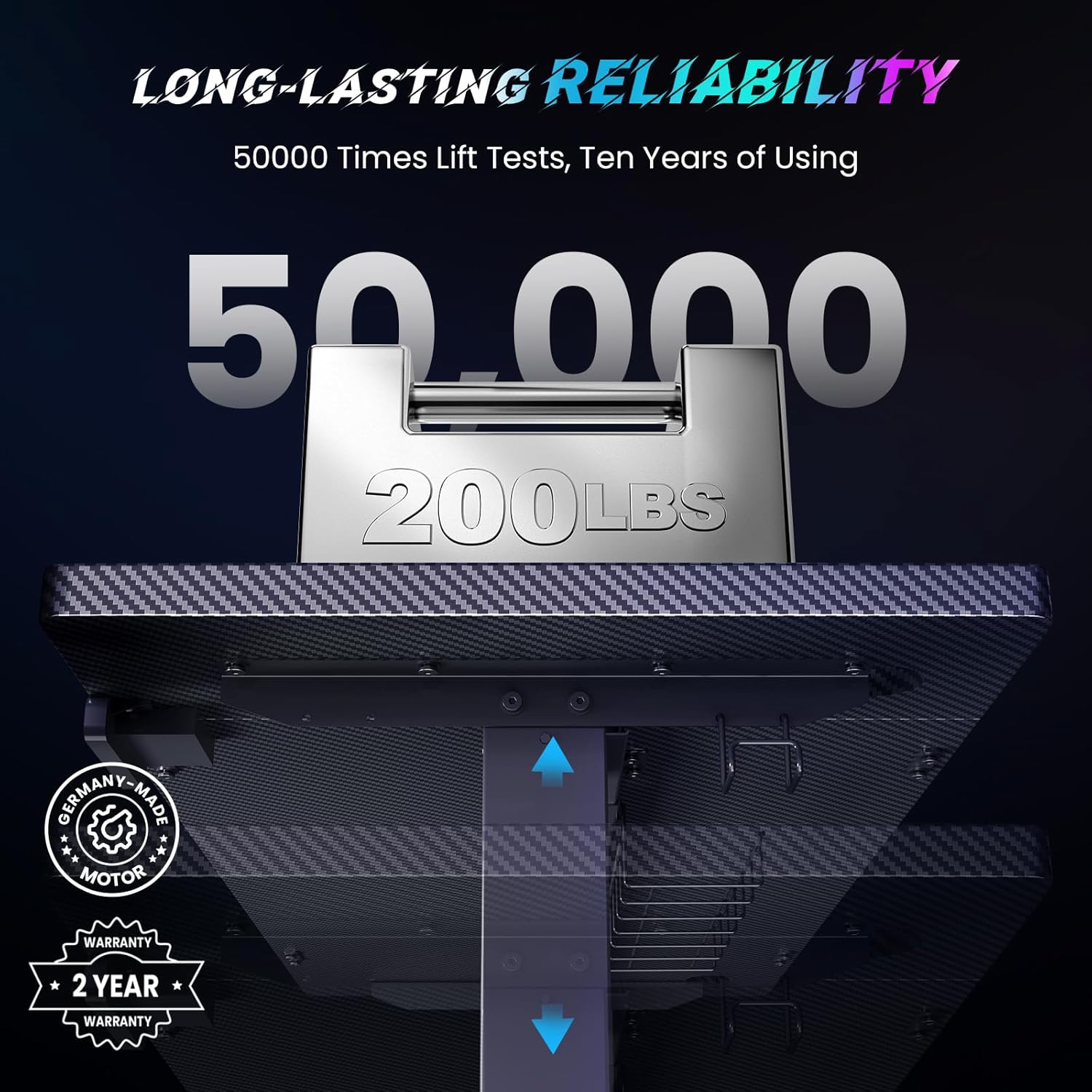 - Reliable&Durable : This electric standing desk lifting power enough to fully loaded office and game equipment up to 200lbs. 50000 times lift tests for years of using.