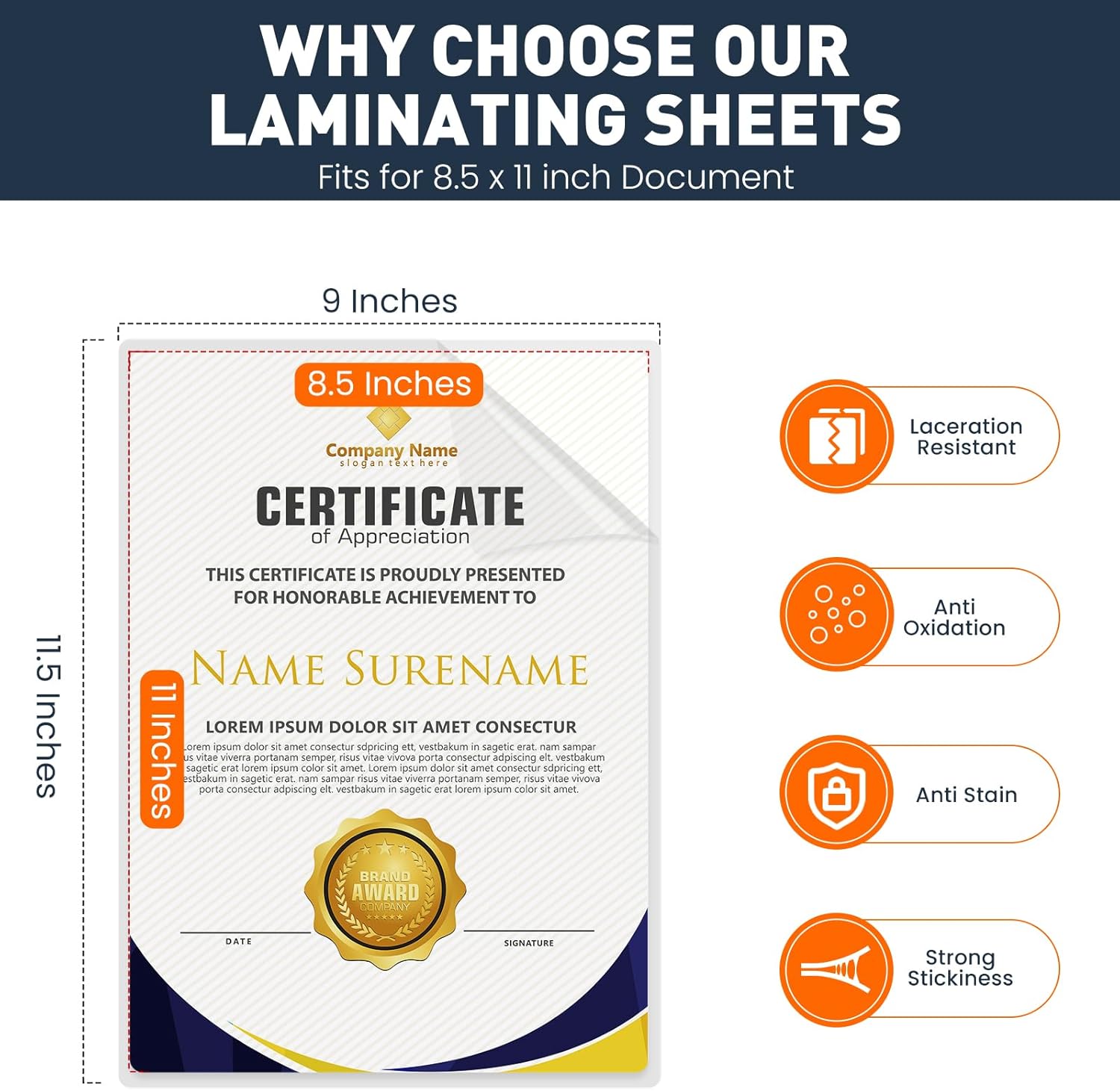 - Laminating Pouches Dimensions: 330 PACK , 3 mil thickness ,9" x 11.5" laminating sheets size, fits for 8.5 x 11 inch document