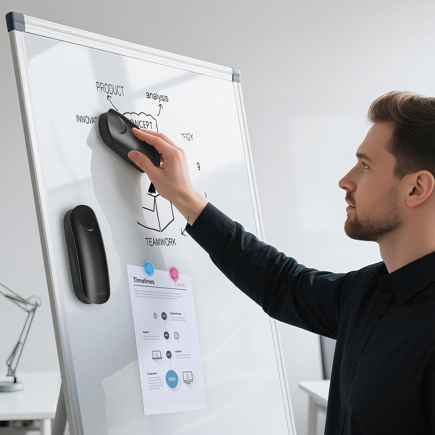 MaxGear Dry Erase Eraser, Magnetic Whiteboard Eraser for Glass Board, Dry Erase Board, Dry Erase Board, Chalkboard Wiper with Built-in Magnet, Teacher Supplies for School, Office, Home, Black, 2 Pack