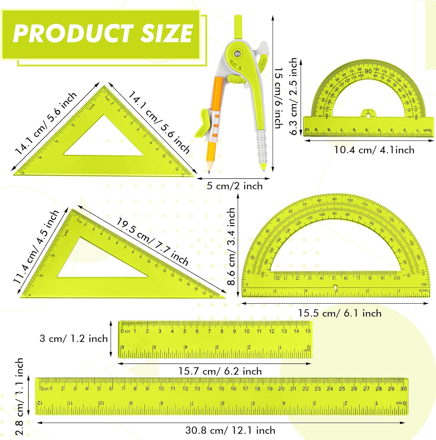 - Versatile and Essential Tools: this compass and protractor are practical tools for drawing circles and measuring angles, respectively, making them a must have for teachers, engineers, designers, artists, among others; This clear plastic ruler set proves to be an indispensable addition to your ruler bulk collection
