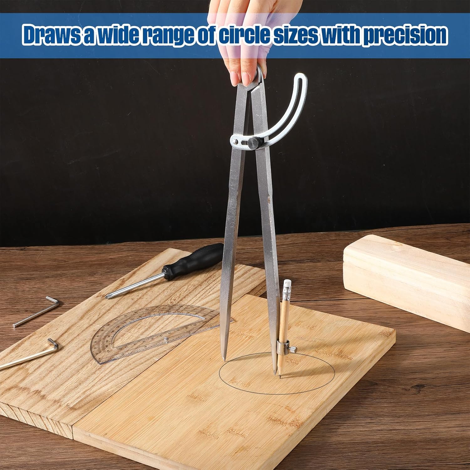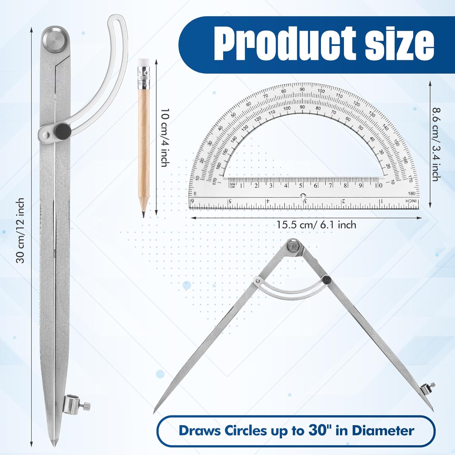 - 12 Inch Large Winged Compass: our large professional compass leg measure 12 inches and can draw circles up to 30 inches (76 cm) in diameter; Made of carbon steel, the metal compass is sturdy and durable, not easy to bend or break during use, suitable for long term use