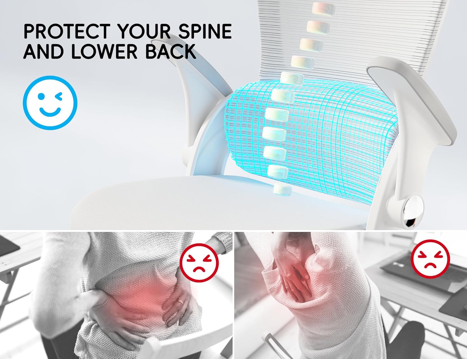 - Ergonomic Lumbar Support for All-Day Comfortļ¼Say goodbye to back pain! Our office chair features an independent lumbar support that perfectly contours to your spine, providing targeted relief and reducing fatigue during long work hours. Whether youāre gaming, working, or binge-watching, your lower back stays supportedāno more slouching or discomfort.