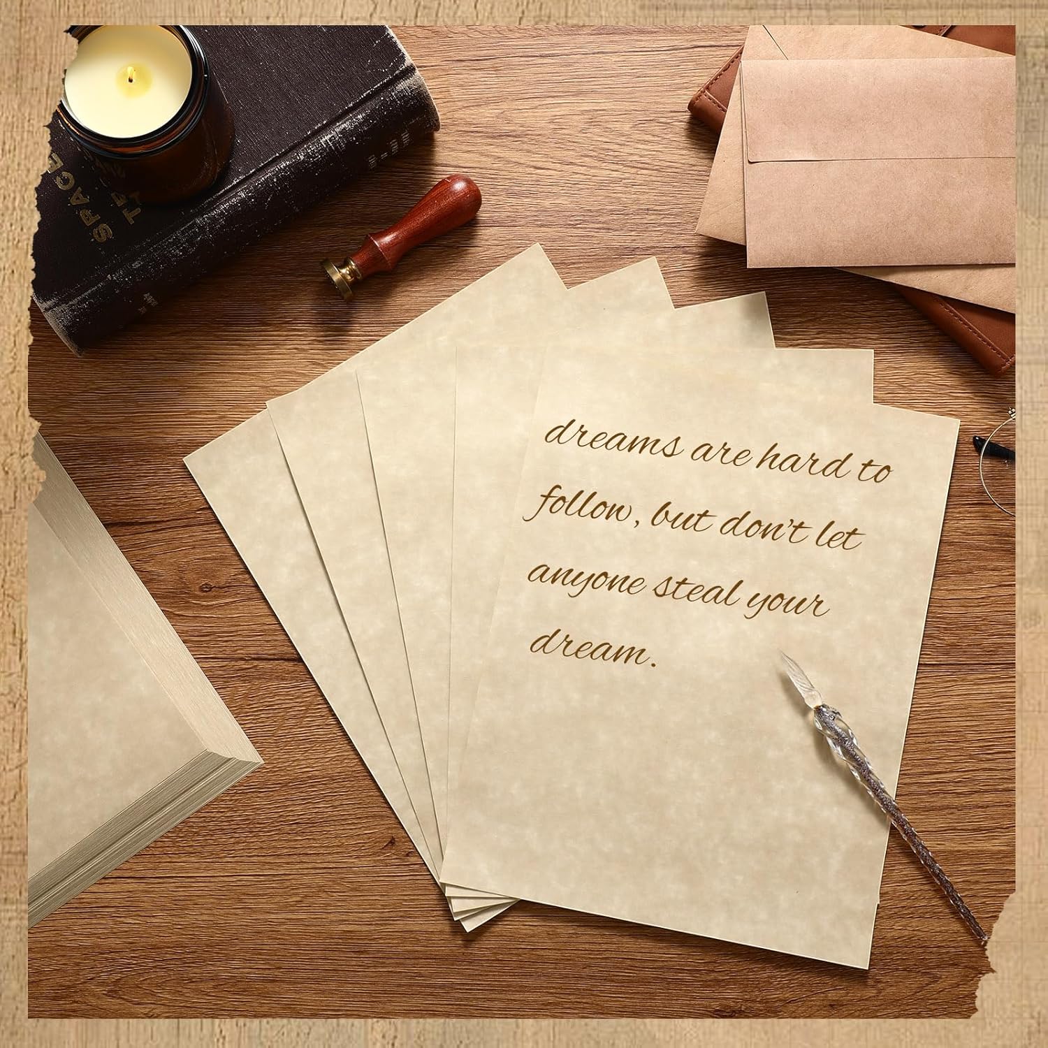 Epakh 200 Pcs Old Age Parchment Paper 8.5 x 11 Inch Standard Letter Vintage Colored Old Parchment Semblance Double Side Printing Paper (Fragrant Wood)