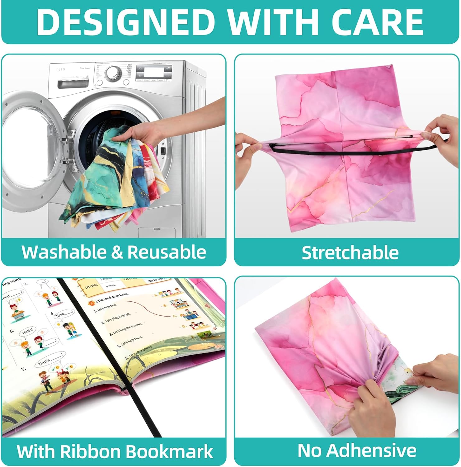 Book Covers – 9 Pack Jumbo Stretchable Book Covers, Reusable & Washable Fabric Book Sleeves for Hardcover & Paperback Textbooks up to 9 x 11 in, Marble Pattern, Back to School Supplies
