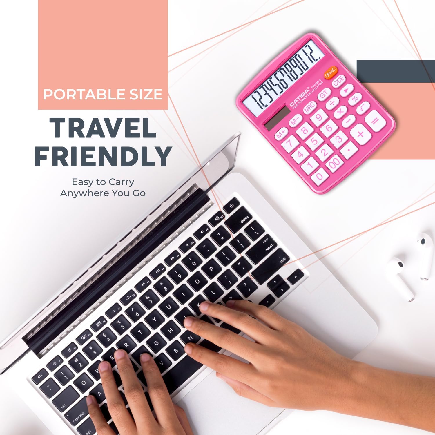- [FUNCTIONALITIES] - Add, subtract, multiply, divide, backspace, grand total, CE, %, M+/M-/MRC, On/AC Button, and Auto Power-Off. The calculator will turn itself off after about 6 minutes of being idle.