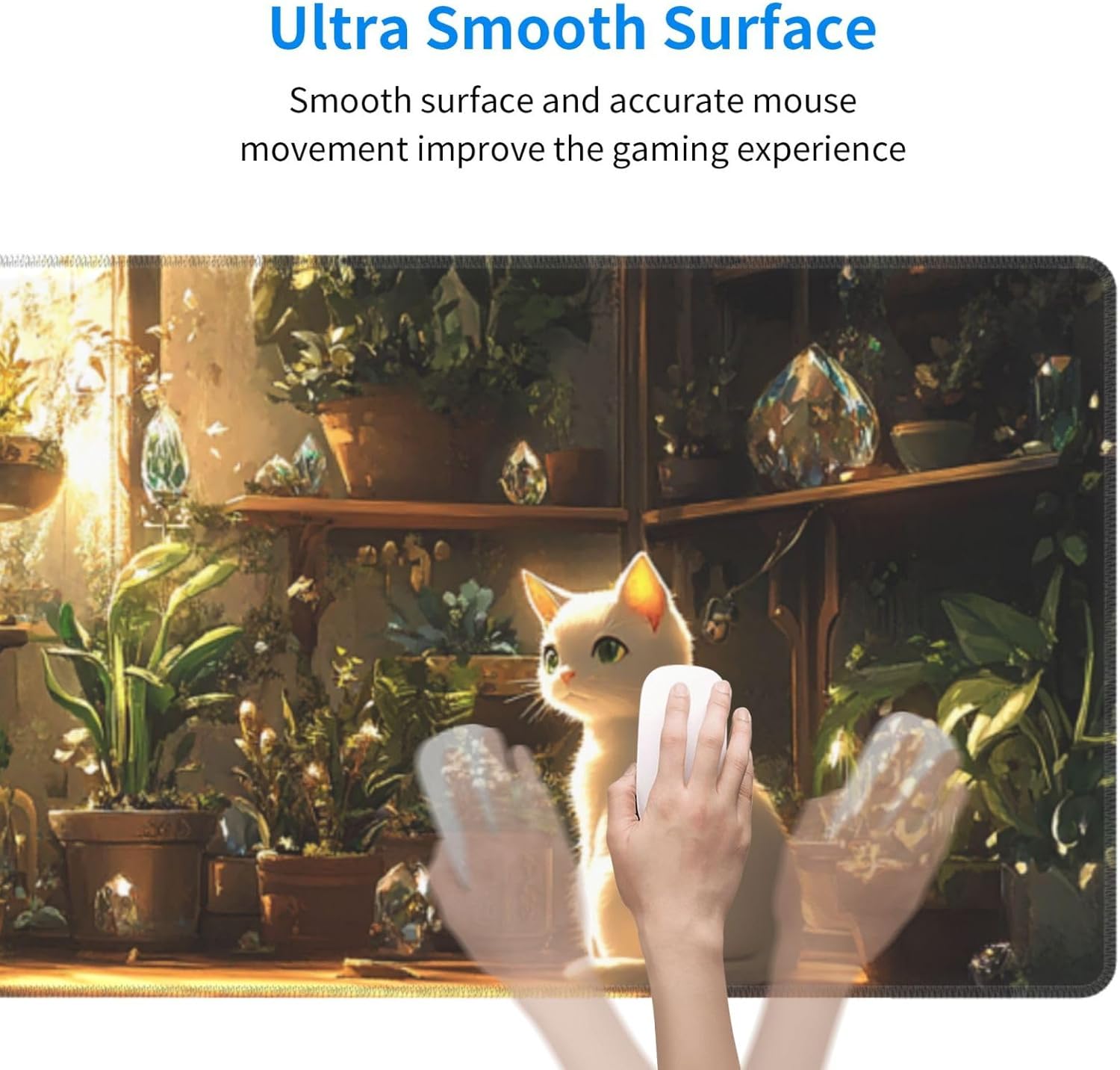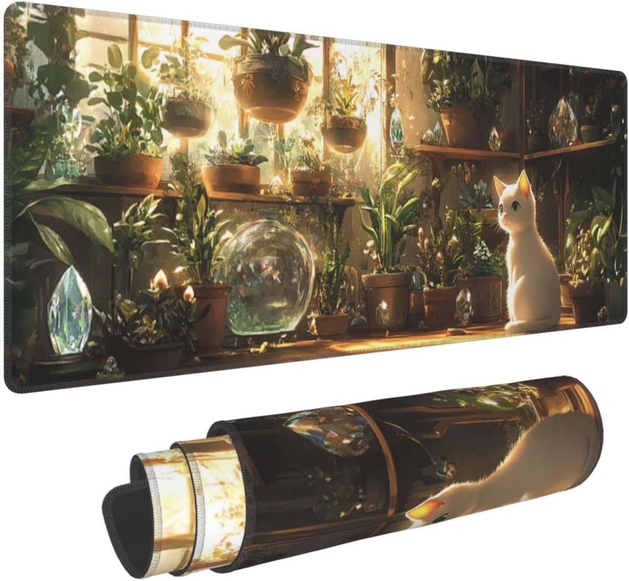 Cat Plant Mouse Pad 31.5 X 11.8 Inch Big Desk Rubber Base Stitched Edges Keyboard Pad XXL Mouse Mat for Home Game and Office