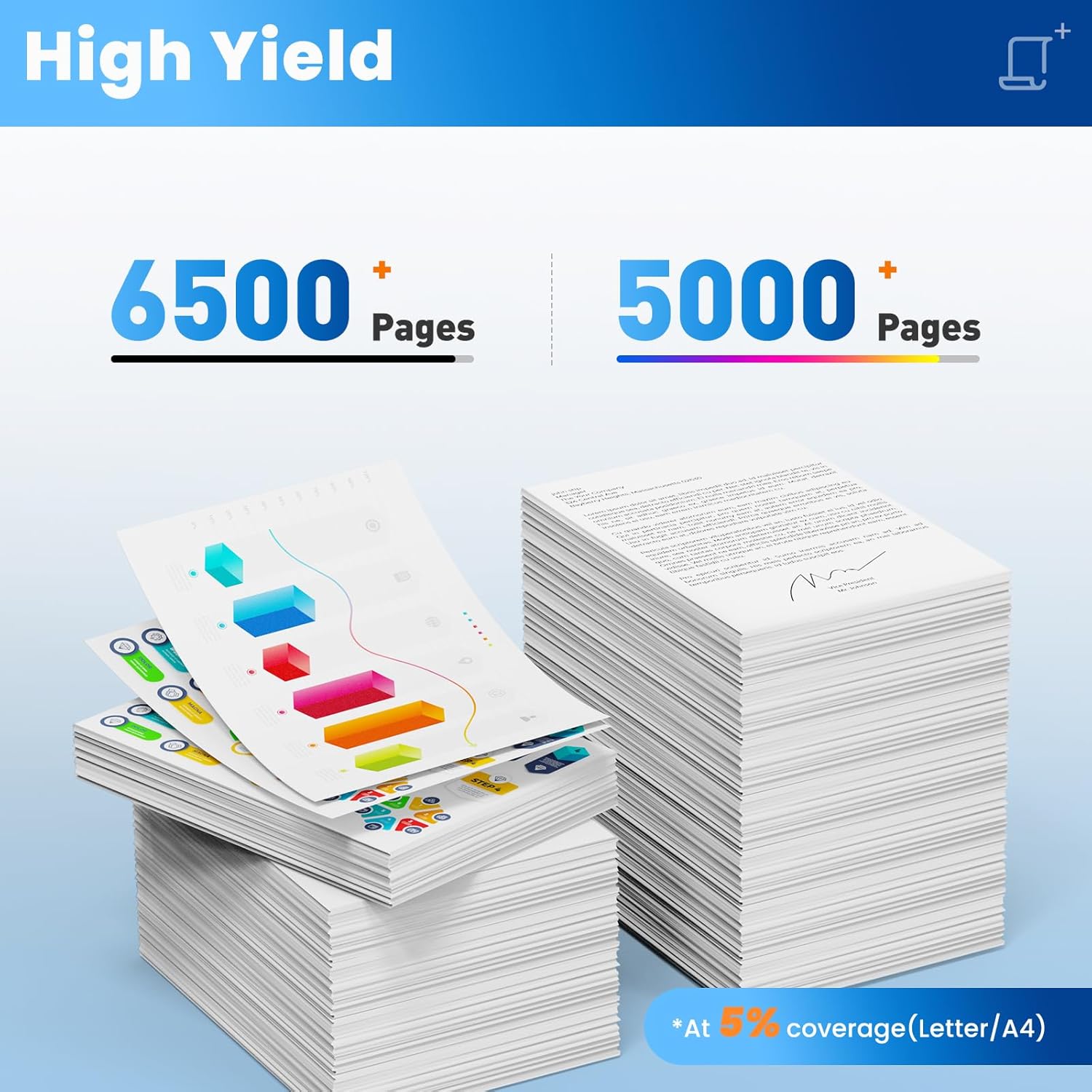 - 410X Toner Cartridge Yield (approx.): 410X toner cartridges 4 pack high yield up to 6,500 pages per 410A black toner cartridge, 5,000 pages per 410A color toner cartridge (Letter/A4, at 5% Coverage)