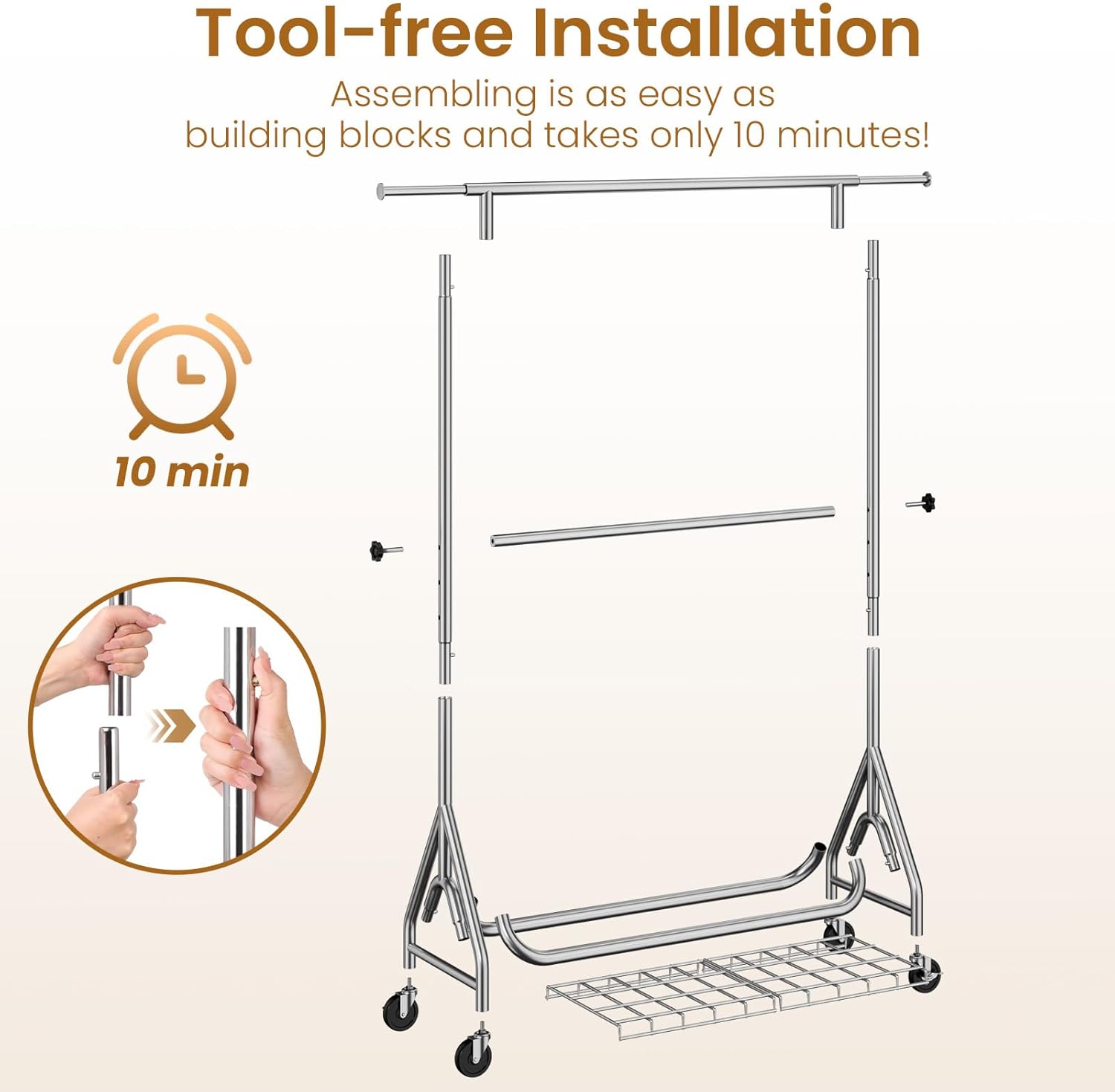 - ๐ฟ๐ค๐ช๐๐ก๐-๐๐ค๐ ๐๐๐ง๐จ๐๐ฉ๐๐ก๐ ๐ฟ๐๐จ๐๐๐ฃ: Maximize your storage with two sturdy hanging rods offering twice the capacity of standard clothing racks. The removable center rod adapts to your needs - keep it for extra hanging space or remove it for longer garments. Ideal for retail displays, home organization, or laundry sorting.