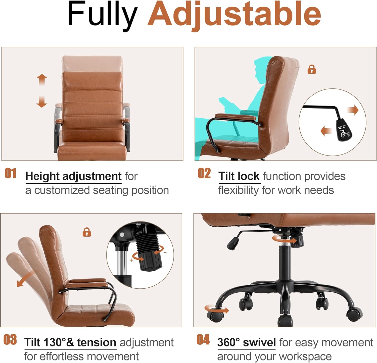 - 【Modern Design】 Adding leather office chair to your space is guaranteed to add some style to your office at home,or while at work. It was not only designed to catch your eye,but it was also designed with extreme comfort.