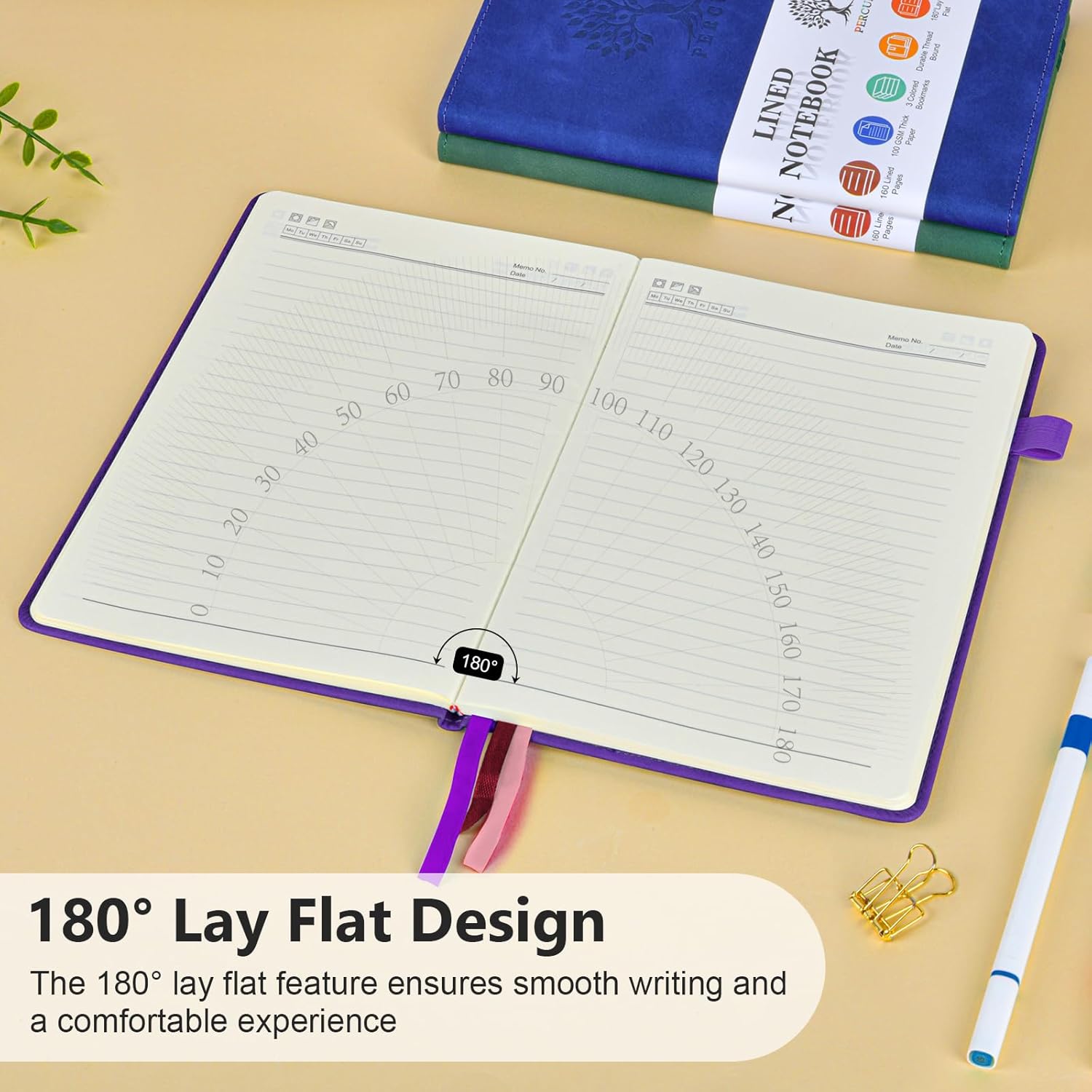 - ă180° LAY FLAT DESIGN & PREMIUM LINED PAPERă: Lay the notebook completely flat for easy writing in any settingâwhether at your desk, in a cafĂ©, or on the go. The 160 pages of 100 GSM lined paper (7mm spacing) offer a smooth writing experience, ideal for journals, work notes, school assignments, or Bible study notes, with minimal ink bleeding or feathering.