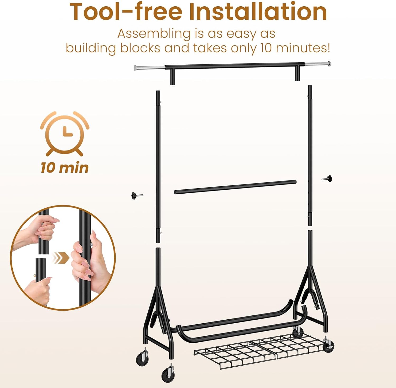 - ๐ฟ๐ค๐ช๐๐ก๐-๐๐ค๐ ๐๐๐ง๐จ๐๐ฉ๐๐ก๐ ๐ฟ๐๐จ๐๐๐ฃ: Maximize your storage with two sturdy hanging rods offering twice the capacity of standard clothing racks. The removable center rod adapts to your needs - keep it for extra hanging space or remove it for longer garments. Ideal for retail displays, home organization, or laundry sorting.