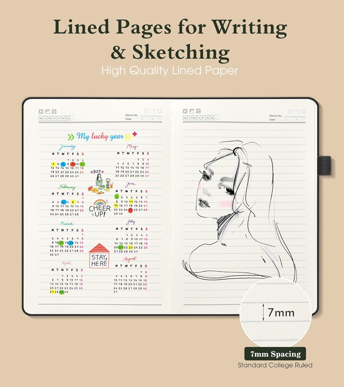 - 【180° Lay-Flat Binding for Effortless Writing】:The journal’s lay-flat design allows full-page access, making writing, reading, or note-taking comfortable for both left- and right-handed users. No more curled pages—perfect for extended writing sessions in meetings, classes, or while traveling.