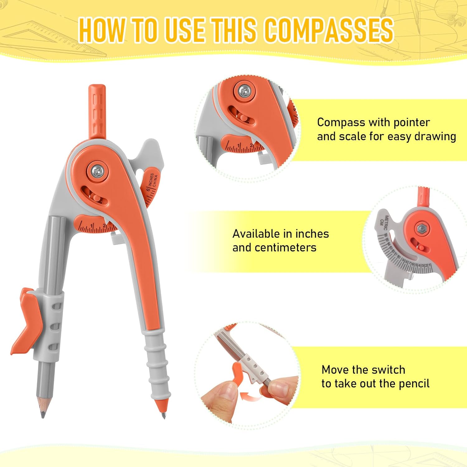 - Reliable Material: these math compasses for geometry are made of tough ABS plastic, safe and lightweight, ensuring they will withstand daily use and last for a long time; The sturdy construction also ensures accurate measurements and precise drawing every time, making them an ideal choice for geometry and math lessons
