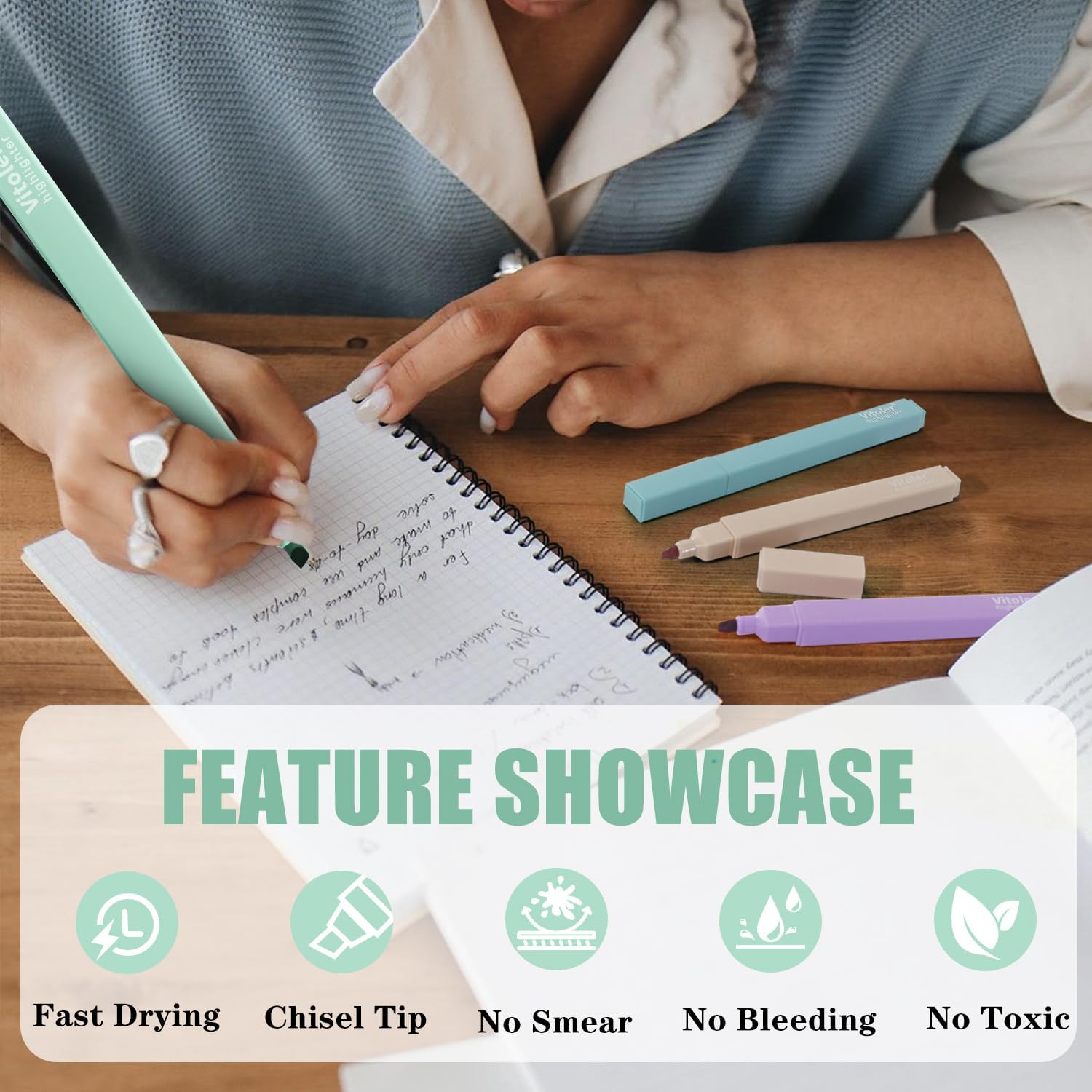 Vitoler Highlighters Assorted Colors,8 Pack,Soft Chisel Tip,Cute Highlighters Set for Aesthetic School Office Supplies,Book Markers