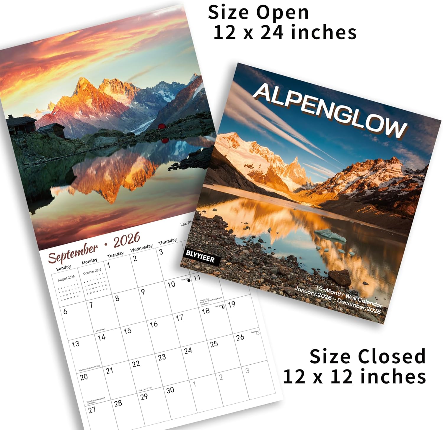 2026 Wall Calendar, Alpenglow Monthly Wall Calendar, 12" x 24" Open,Family Planner Calendar Organizer with Mountain of Sunrise Images