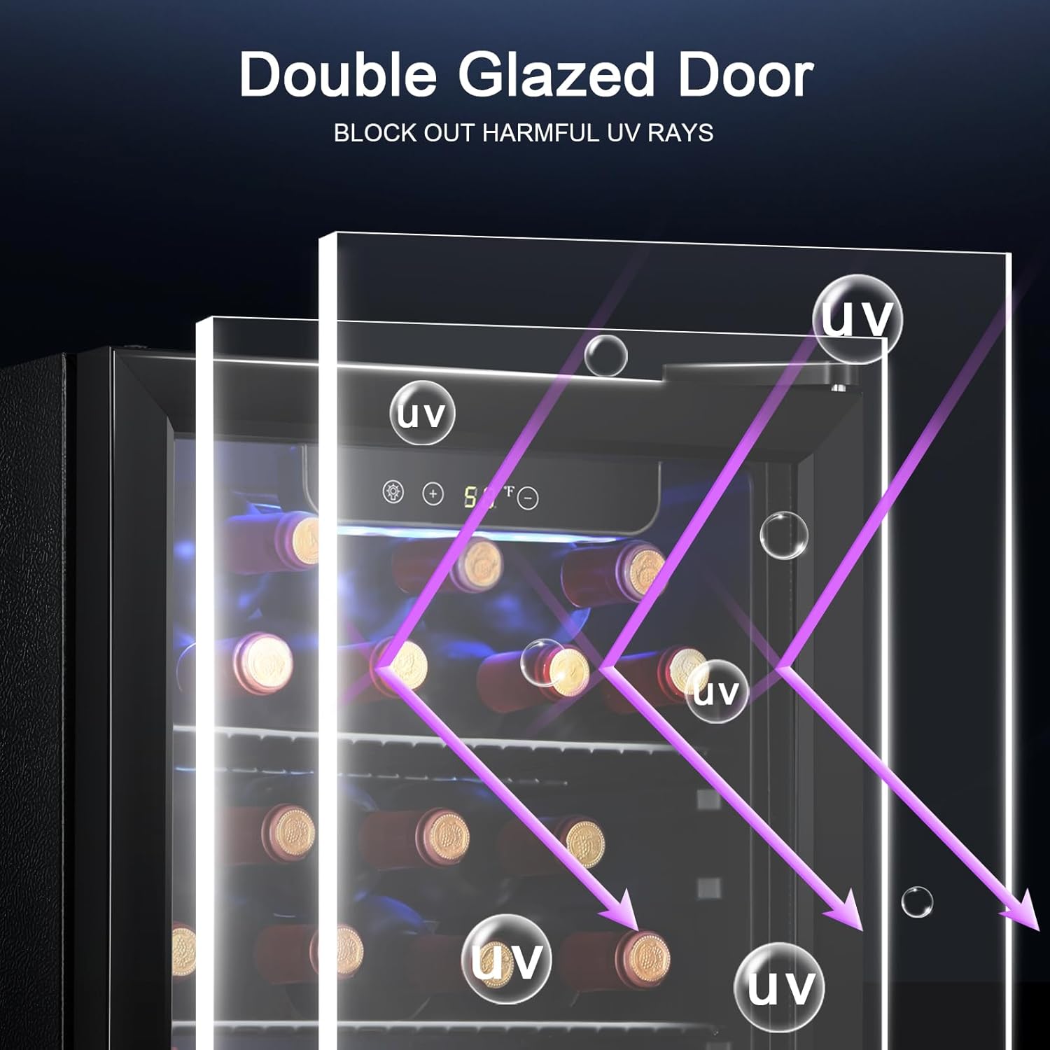 - Tinted Double Pane Glass Door:Double-pane tempered glass door and air tight seal ensures maximum insulation. Transparent double-glazed door allows you to clearly see the amount of drinks in the cooler.