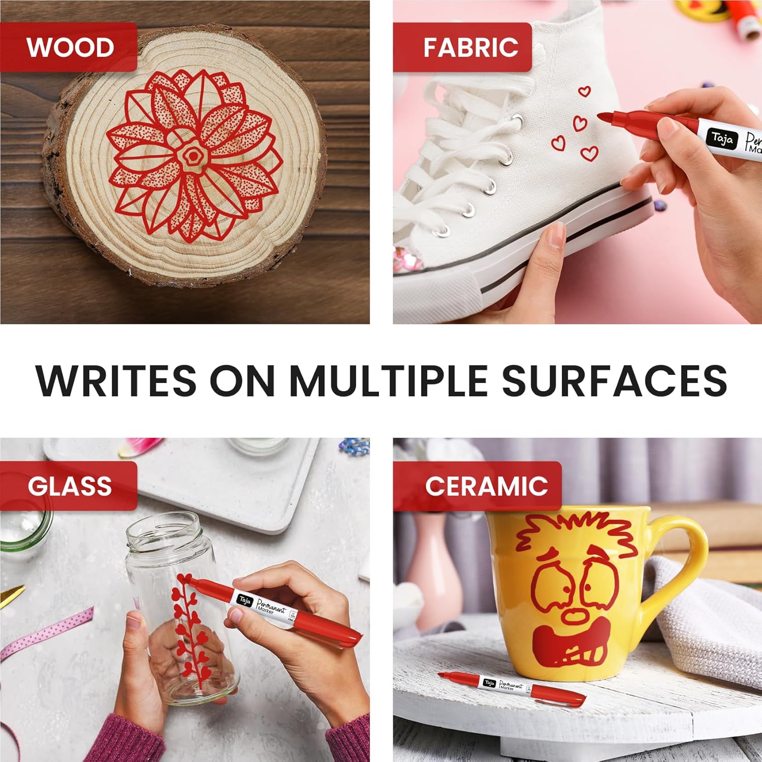 Permanent Markers Fine Tip, 30 Pack Red Quick-Drying and Fade-Resistant Permanent Markers Bulk Set for Writing and Drawing on Wood, Plastic, Metal, Glass, Stone, Ideal for Office School Supplies