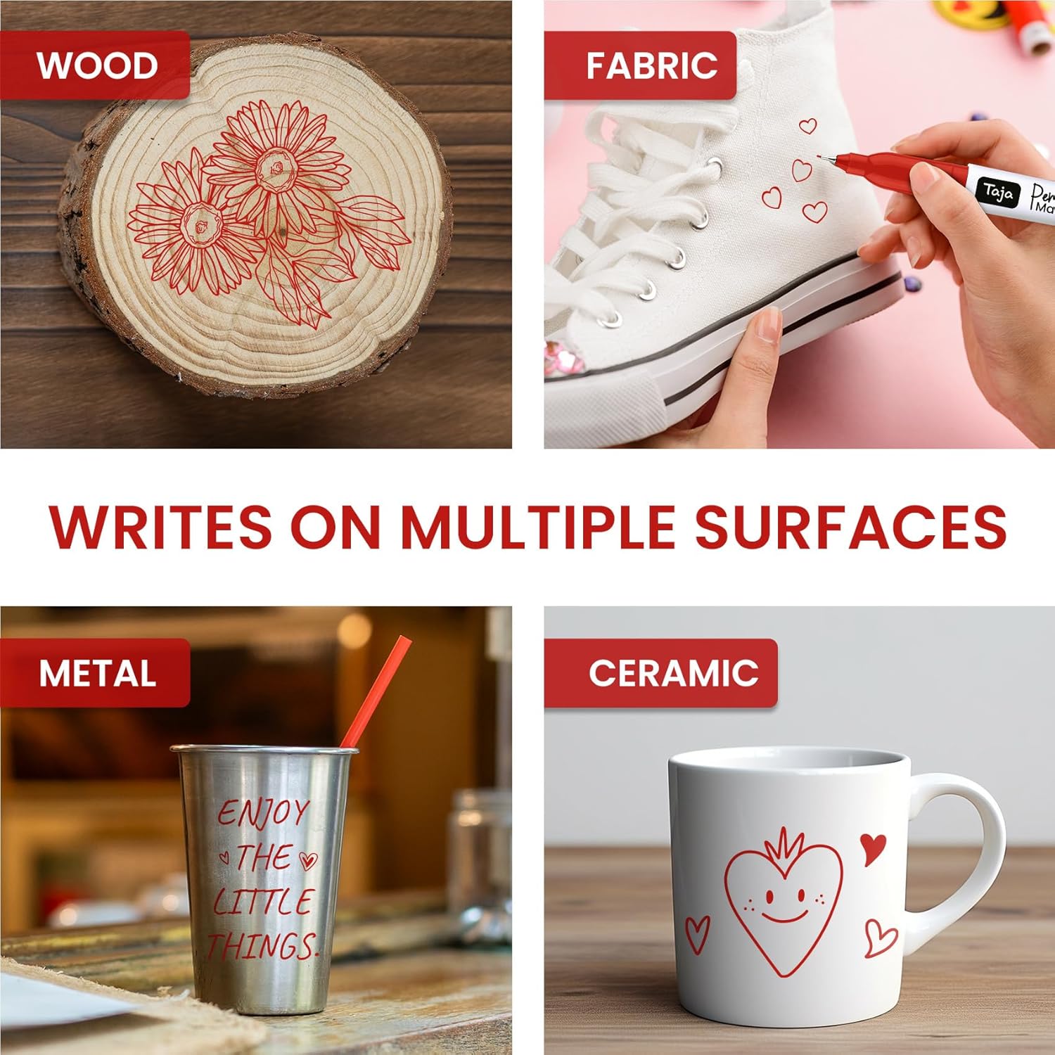 Permanent Markers Ultra Fine Tip, 30 Pack Red Quick-Drying and Fade-Resistant Permanent Markers Bulk Set for Writing and Drawing on Wood, Plastic, Metal, Glass, Ideal for Office School Supplies