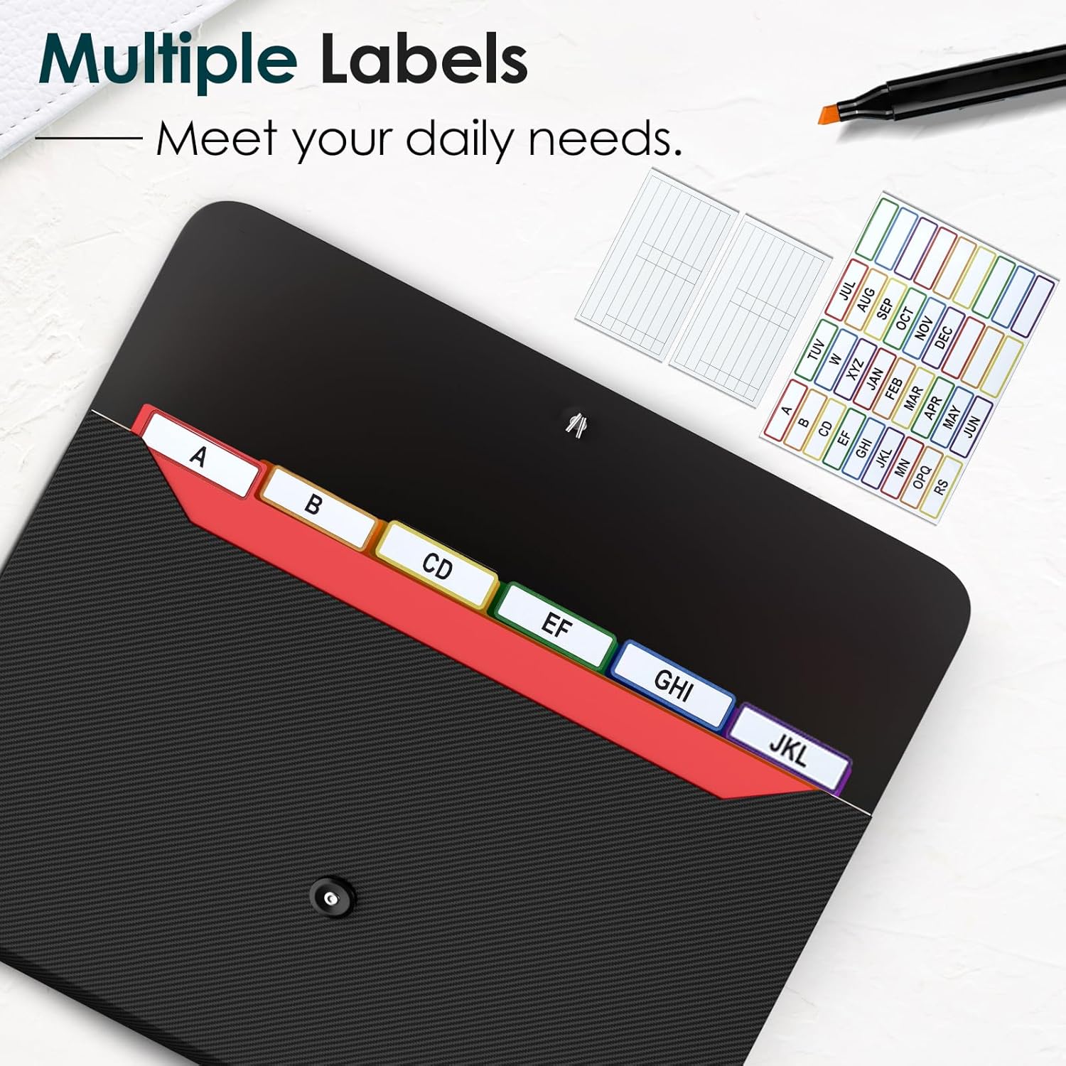 10 Pack Accordion File Organizer with Labels, 13 Pockets Expending File Folder, Binder for Document Storage, Classroom, Office, Home Use, Black