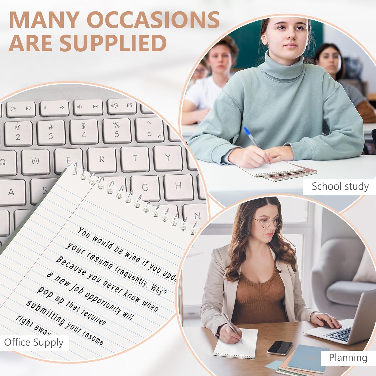 - Wide Application: with their attractive colored covers, these spiral note pads can serve multiple purposes; Whether you use them as study notes, a personal diary, a sketchbook, a travel diary, or work notes; These notebooks are suitable for a variety of contexts such as office, travel, reports, and translation