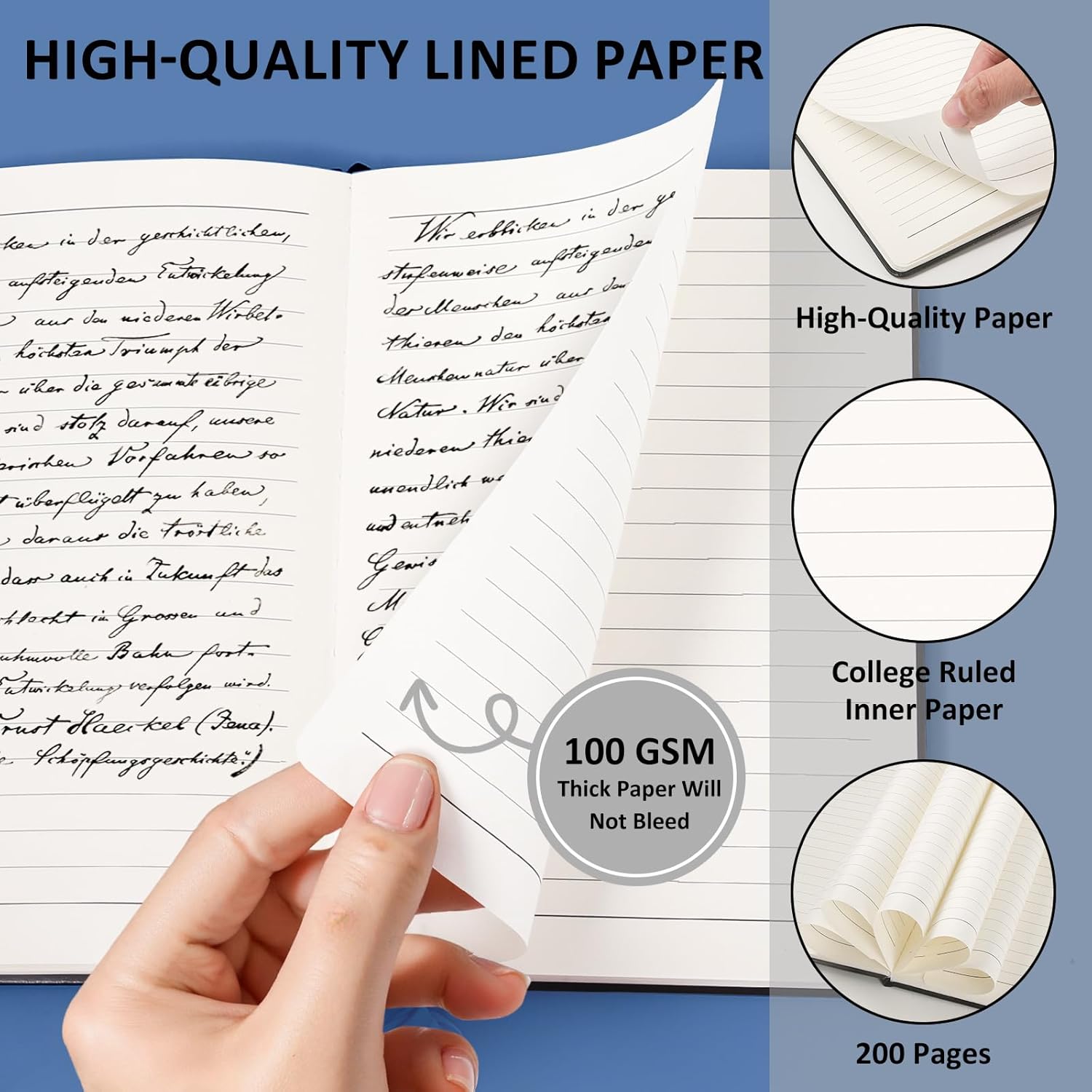 - 100 GSM Thick Notebook Journal: This notebook provides generous 200 pages for long-term use, reducing the need for multiple notebooks. Features high-quality 100 GSM thick, acid-free, ivory paper that prevents ink bleed-through and ghosting, ensures a smooth writing experience, and is gentle on eyes with 8mm college ruled lines. Works great with all pen types.