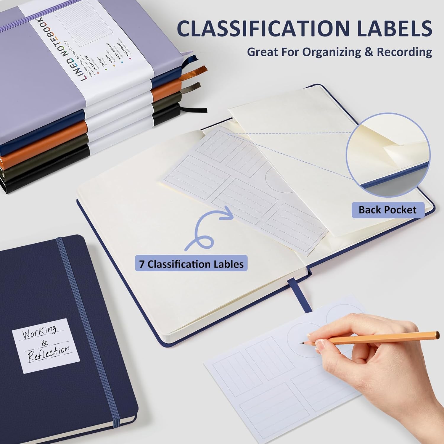 - 180° Lay Flat Design:The 180° lay-flat design ensures effortless writing at any angle, allowing seamless use of both pages. The A5 college ruled journal Notebook eliminates awkward angles and enhances the overall writing experience, adapting smoothly to any writing surface.The back cover of the notebook journal includes an expandable pocket to store small objects. The elastic band on the outside of the lined notebook can also help you fix and mark pages perfectly.