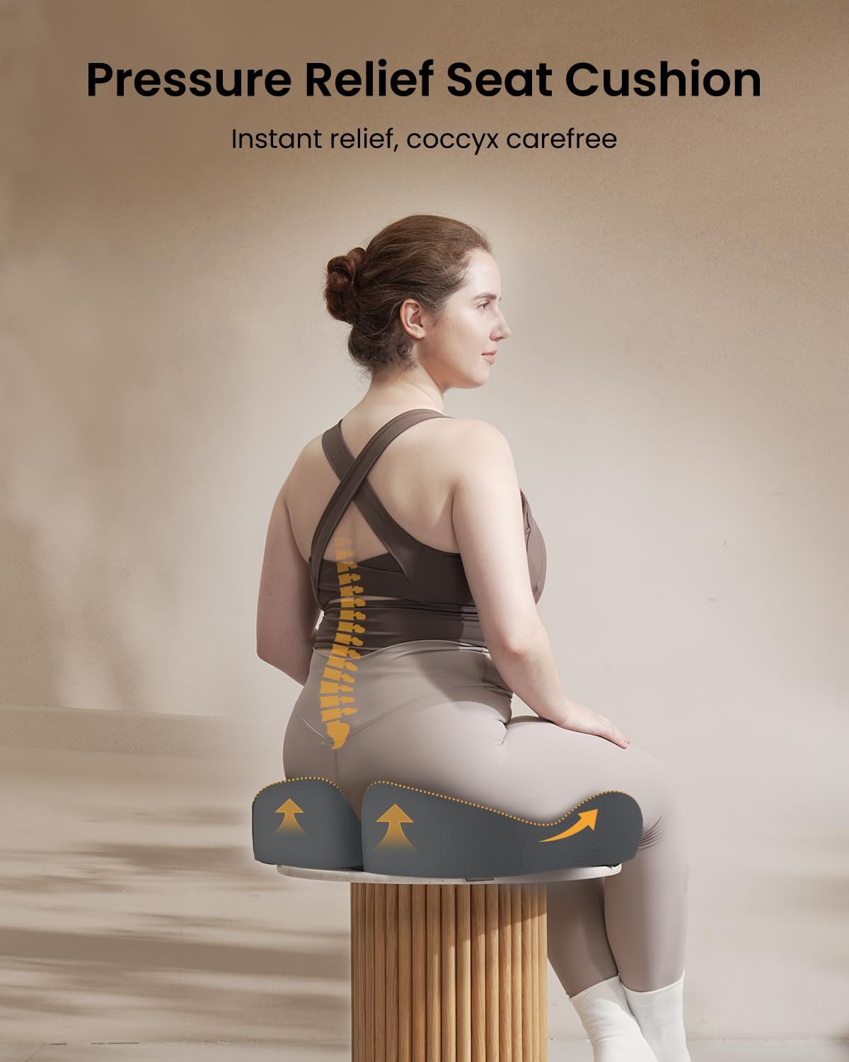 - Targeted Pressure Relief: The split design of our cushion targets pressure points on hips, thighs, and coccyx, alleviating lower back and hip pressure while encouraging proper posture. Experience relief and comfort during extended periods of sitting