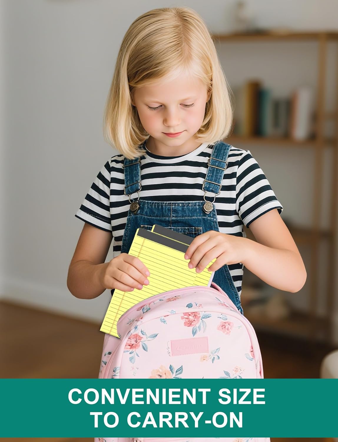 - [WIDE RANGE OF APPLICATIONS]: These small Notepads perforated edge yellow legal note pad for everyday writing is good for students, teachers waitress, home, school or office, business, restaurants and more. You can use yellow notebook pad 5x8 create reminders, to do lists, notes. Take your grocery list with you on the go or stash that to-do in your pocket. The convenient 5 x 8 inch size makes them versatile for creating reminders.