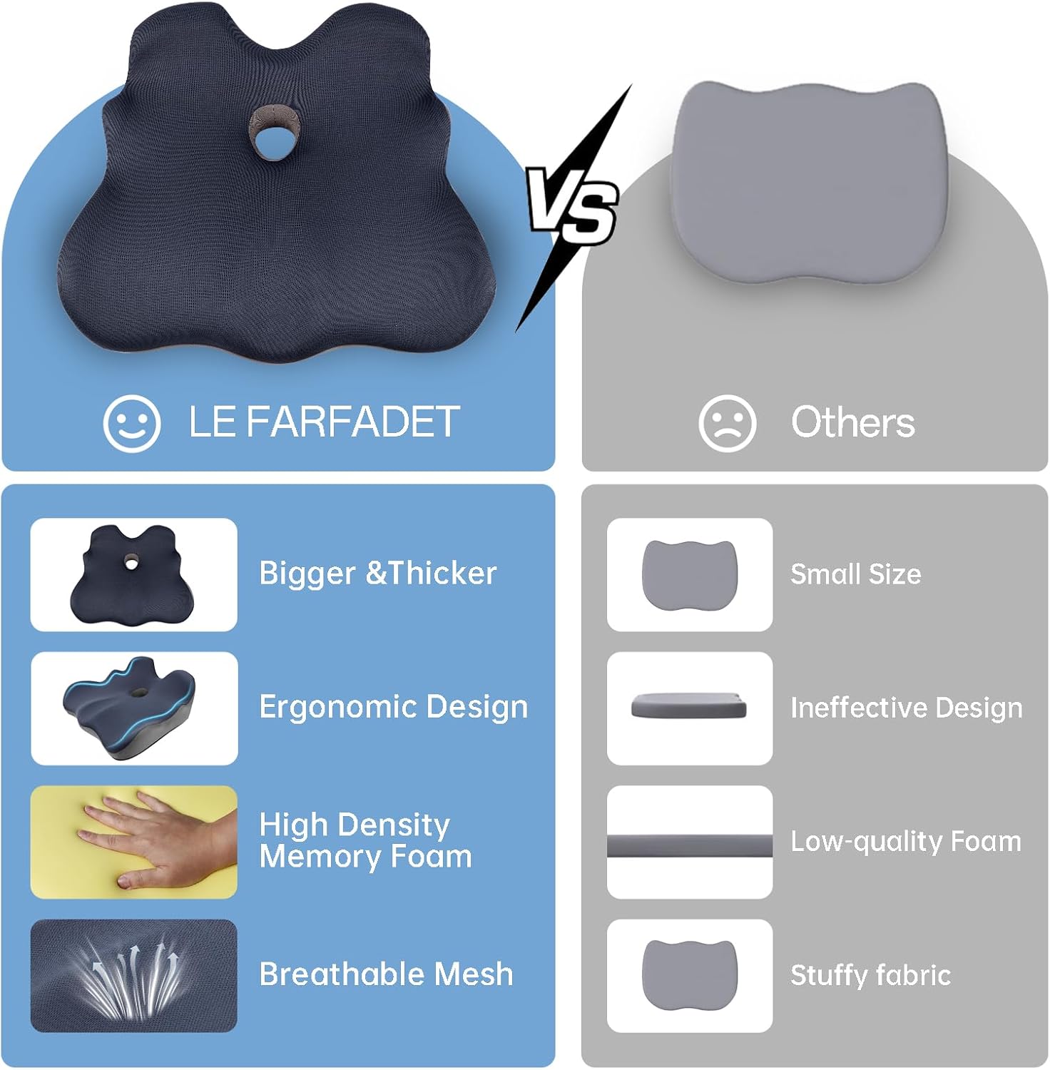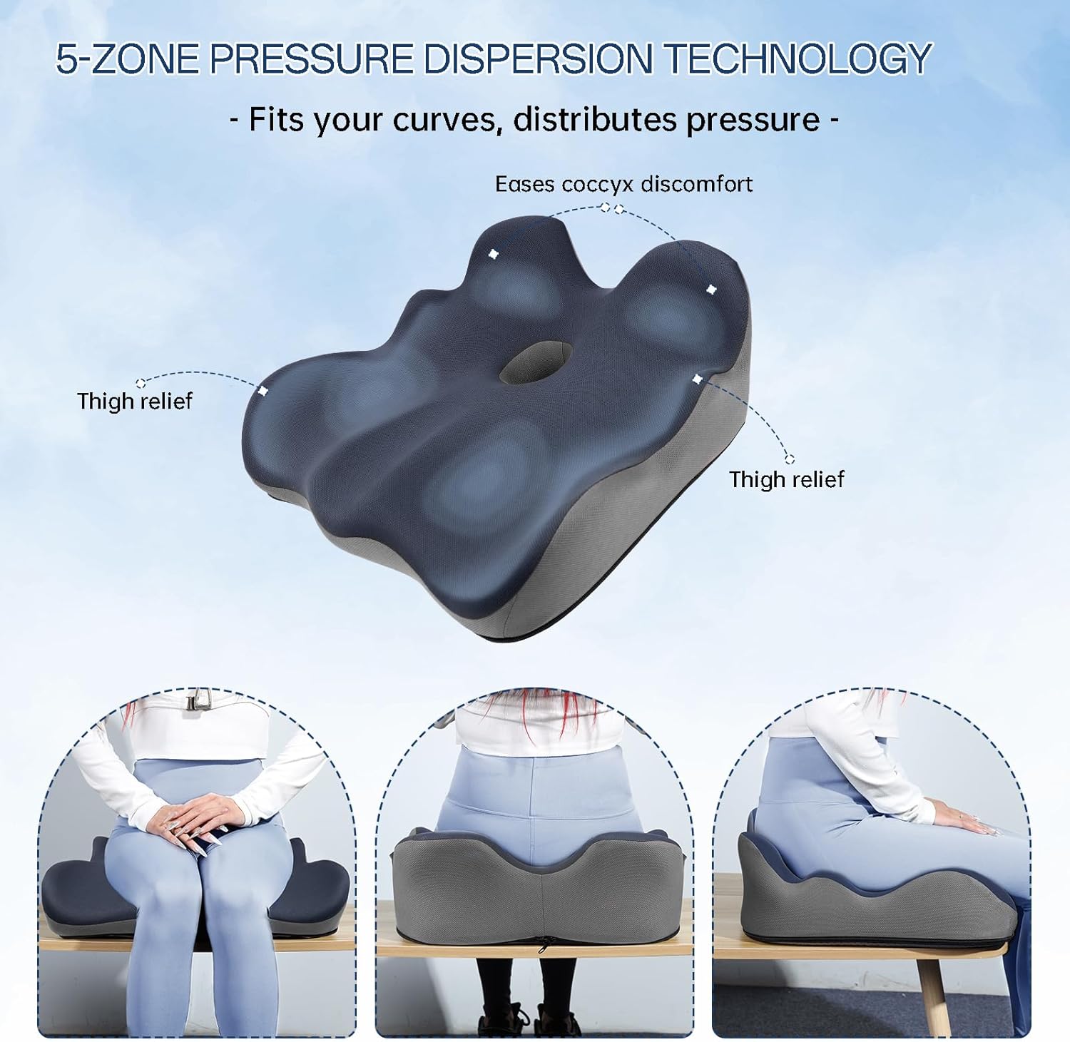 Seat Cushion, X-Large Memory Foam Office Chair Cushion, for Pressure Relief Sciatica & Pain Relief for Long Sitting Hours on Office/Home Chair, Car (Blue)