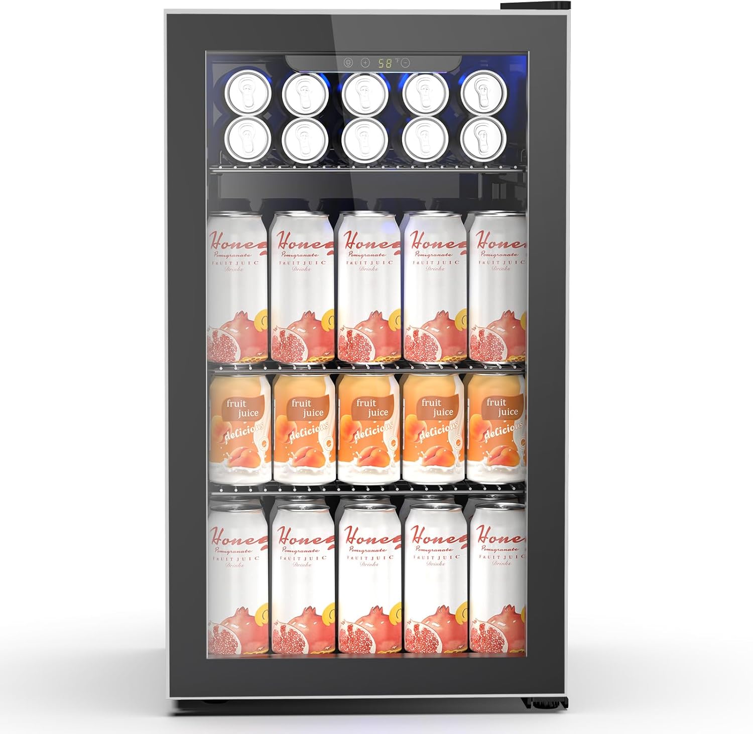 - [3.2 Cubic Feet, 130 Can Storage]: This beverage refrigerator has 3.2 cubic feet of storage space and can hold up to 130 cans of beverage. Meet your daily beverage storage needs. You can have a drink with perfect temperature at any moment.