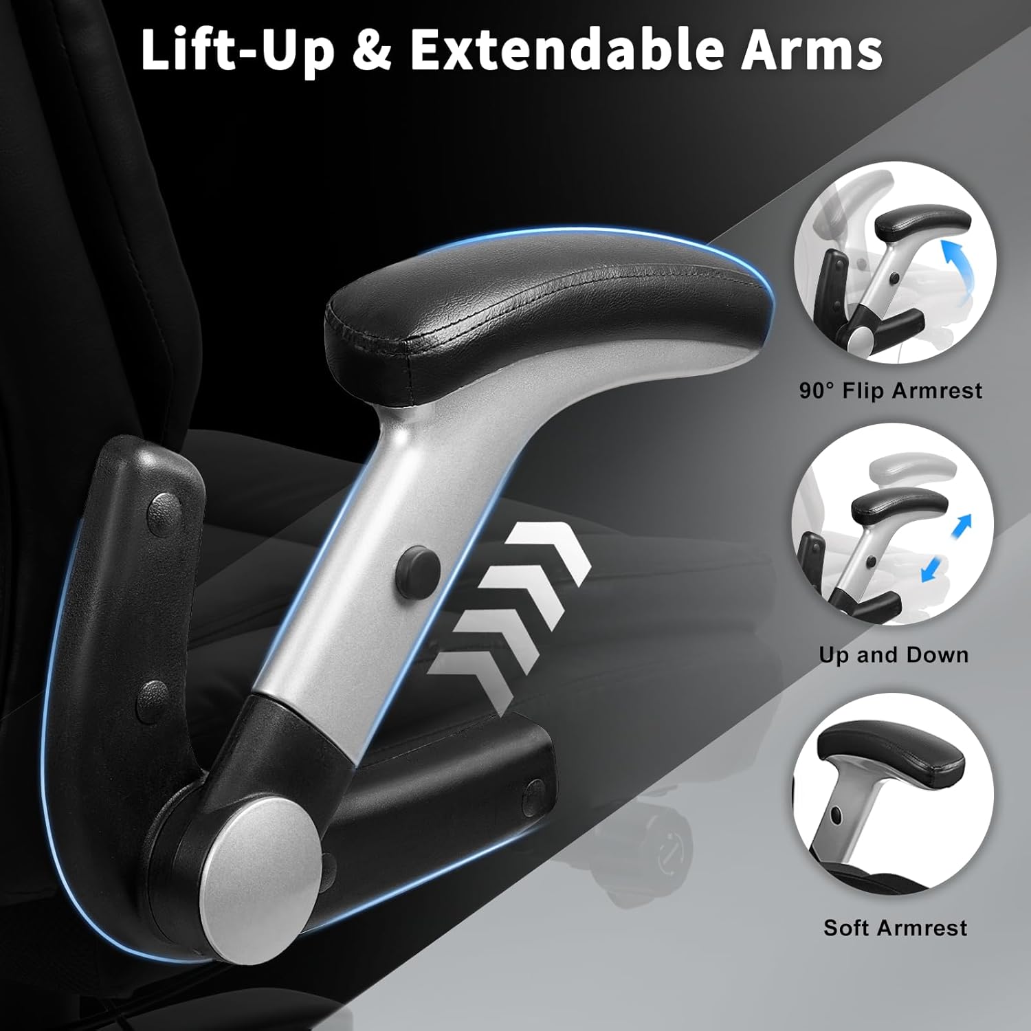 - ăLift-Up Armrests - Space-Saving & Convenienceă: This ergonomic high-back office chair features adjustable armrests that allow you to enjoy maximum relaxation while occupying minimal space. The armrests can be easily adjusted during use and conveniently tucked away when not needed, creating more room and facilitating movement. Whether you're typing, writing, or taking a break, our comfy high back heavy duty office chair ensures a satisfying seating experience.