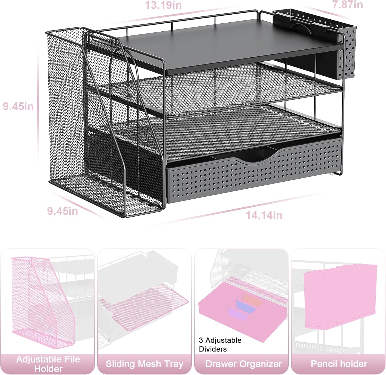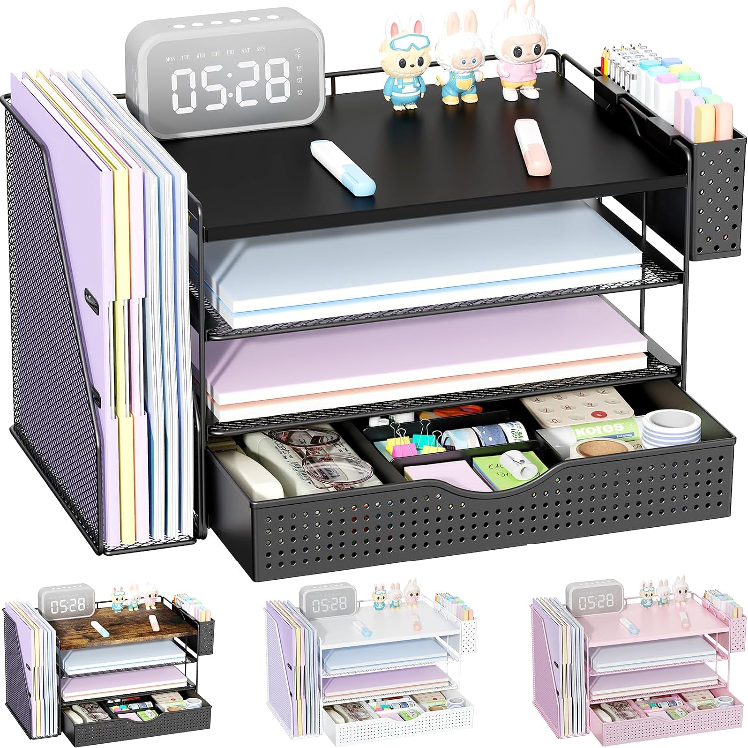 - ăImprove Work Efficiencyă: This pen organizer contains 4 trays, 1 magazine rack, 1 pen holder, and 1 sliding drawer, which can help you quickly identify the contents of each compartment, helping to keep papers, notebooks, and office supplies neatly organized and easily accessible., so that you can stay busy and creative all day long.