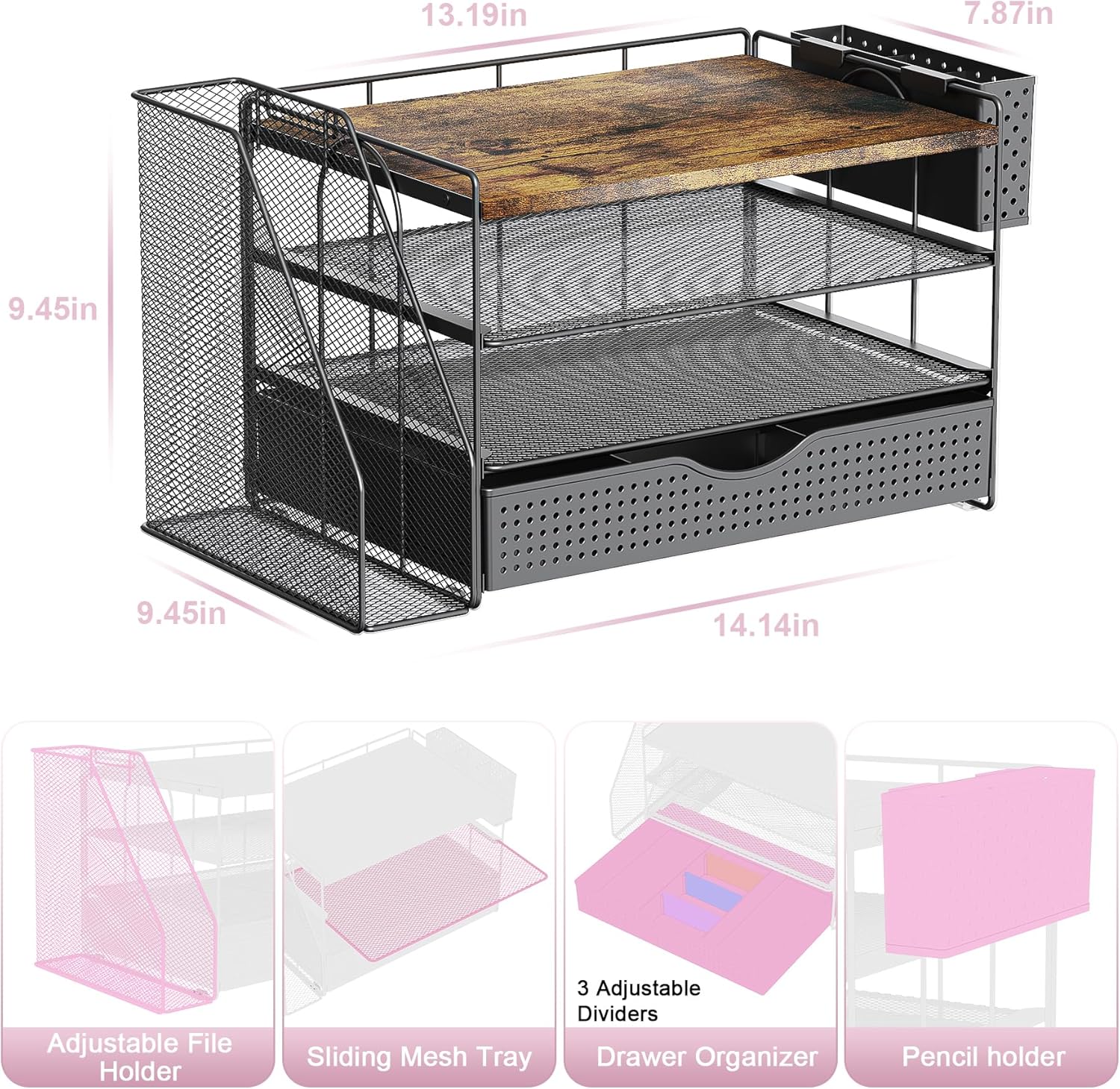 - ăImprove Work Efficiencyă: This pen organizer contains 4 trays, 1 magazine rack, 1 pen holder, and 1 sliding drawer, which can help you quickly identify the contents of each compartment, helping to keep papers, notebooks, and office supplies neatly organized and easily accessible., so that you can stay busy and creative all day long.