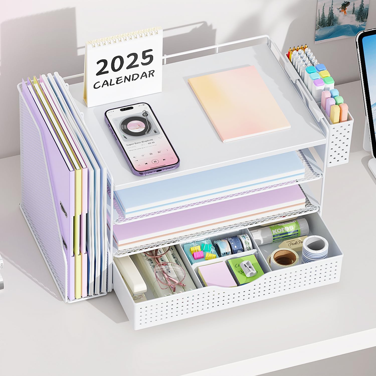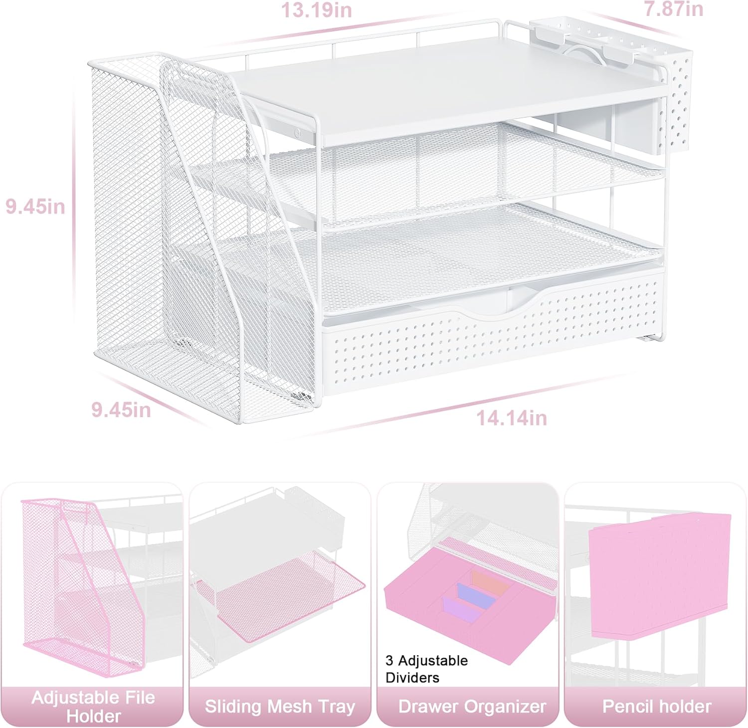 - ăImprove Work Efficiencyă: This pen organizer contains 4 trays, 1 magazine rack, 1 pen holder, and 1 sliding drawer, which can help you quickly identify the contents of each compartment, helping to keep papers, notebooks, and office supplies neatly organized and easily accessible., so that you can stay busy and creative all day long.