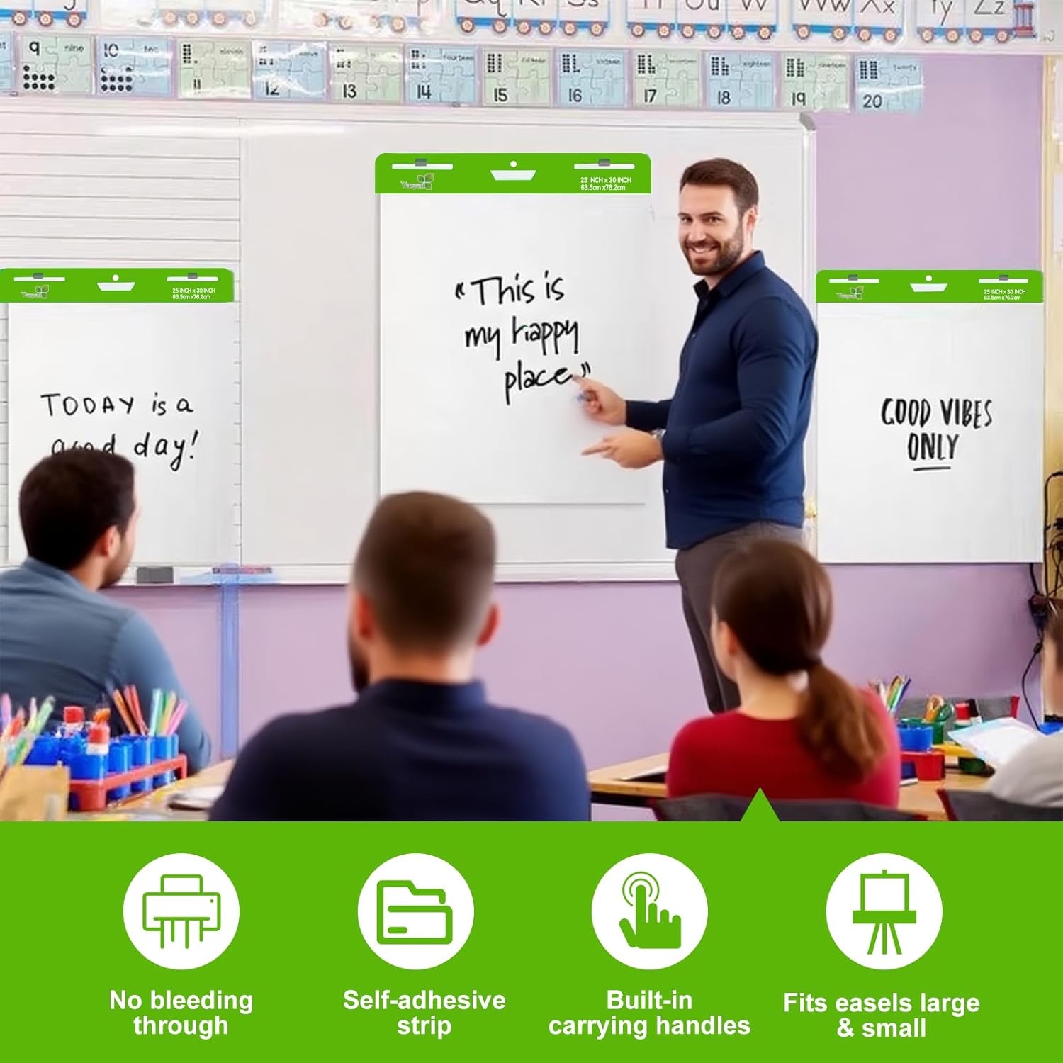 Sticky Easel Pad 25 in x 30 in, 35 Sheets/Pad, 4 Pads/Pack, 140 Sheets, Large White Sticky Easel Paper for Office and Classrooms, Flip Chart Paper for Teachers,Super Sticking Power & Bleed-Resistant