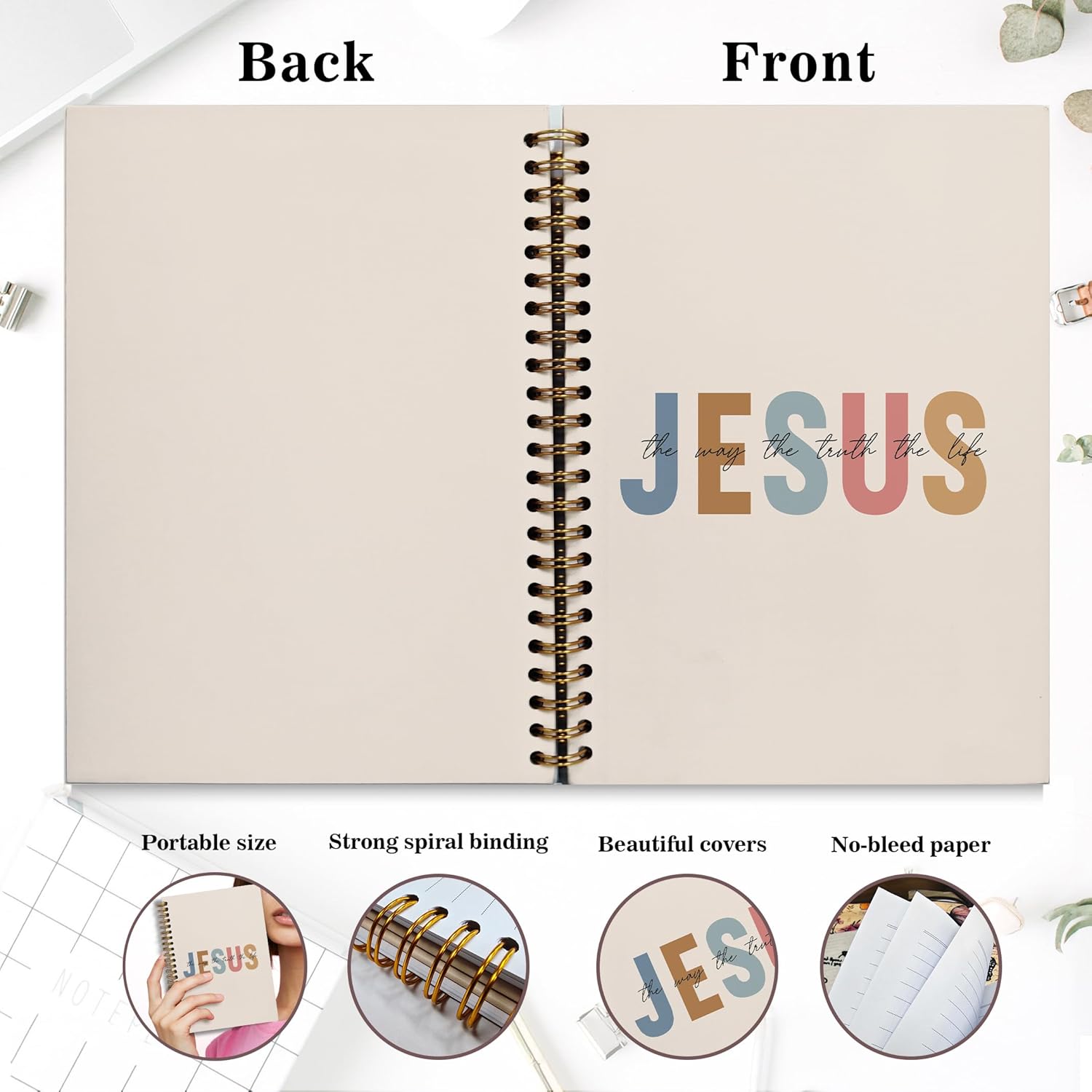 - 2.Bible Journaling Hardcover Spiral Notebook The notebook has a double spiral design, the sturdy spiral binding allows the notebook to lay flat, making it easy to write on both sides of the page. made of thick paper, prevents ink from leaking, safe, easy to write