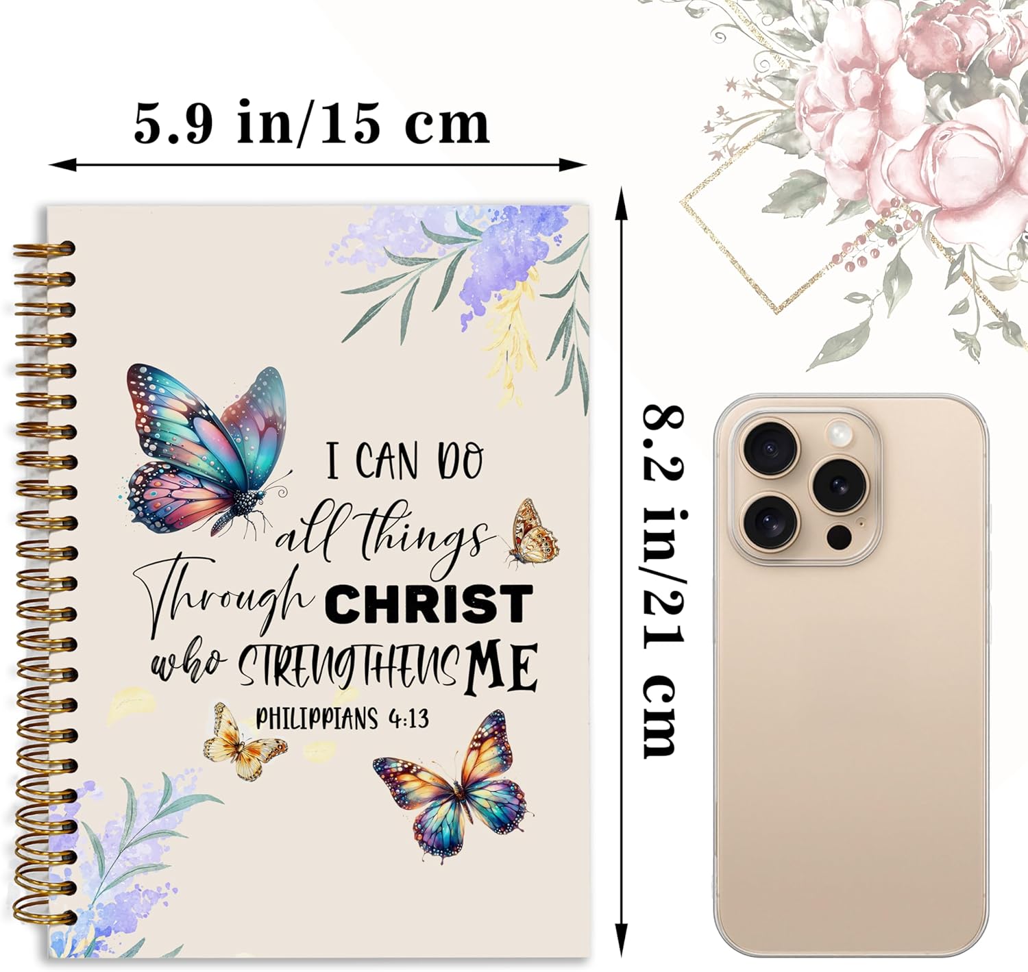 Bible Notebook, A5 Spiral Christian Journal Butterfly Notebook, Bible Verse-I Can Do All Things Through Christ Who Strengthens Me, Inspirational Notebooks for Women, Gift for Birthday Christmas