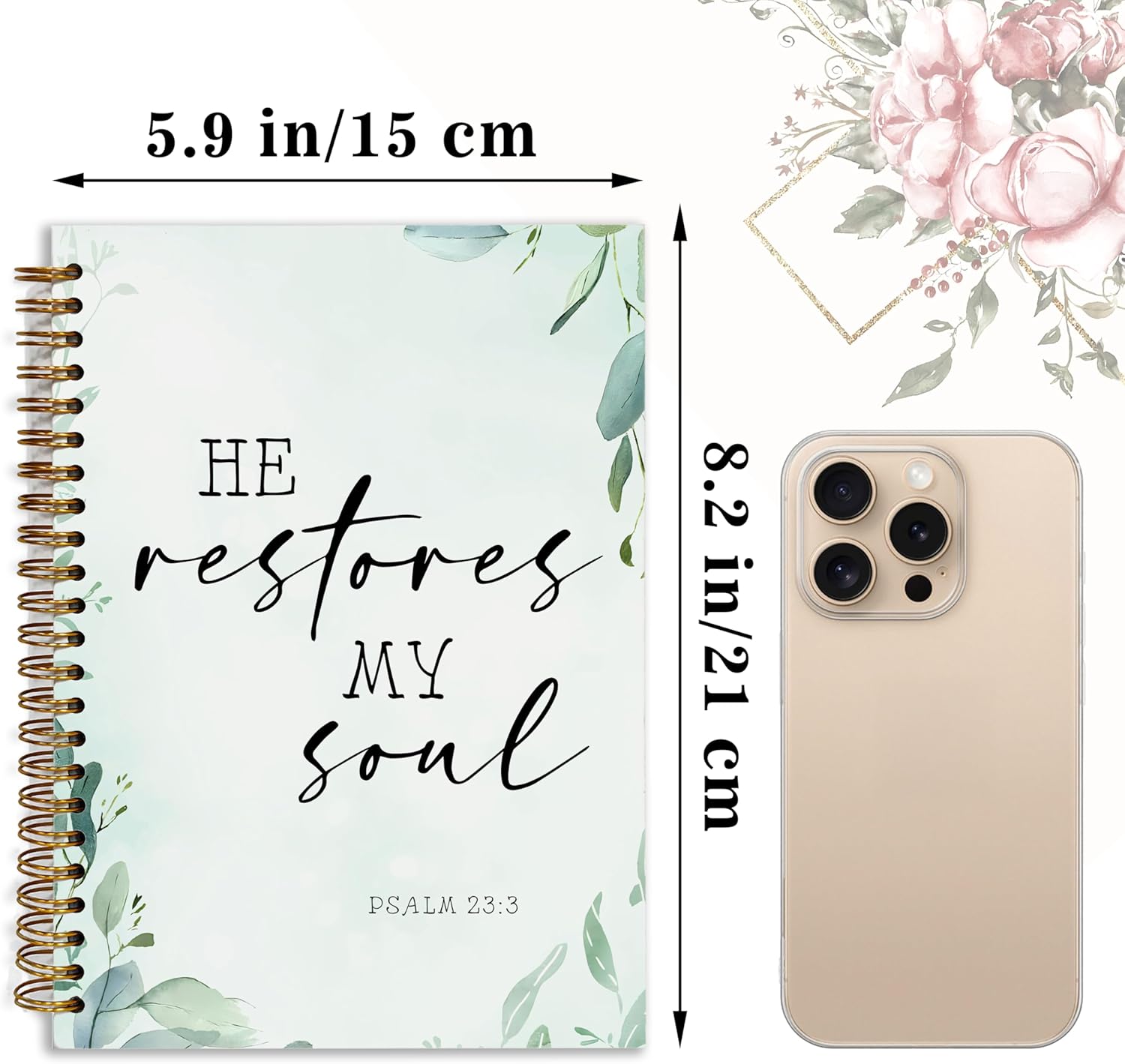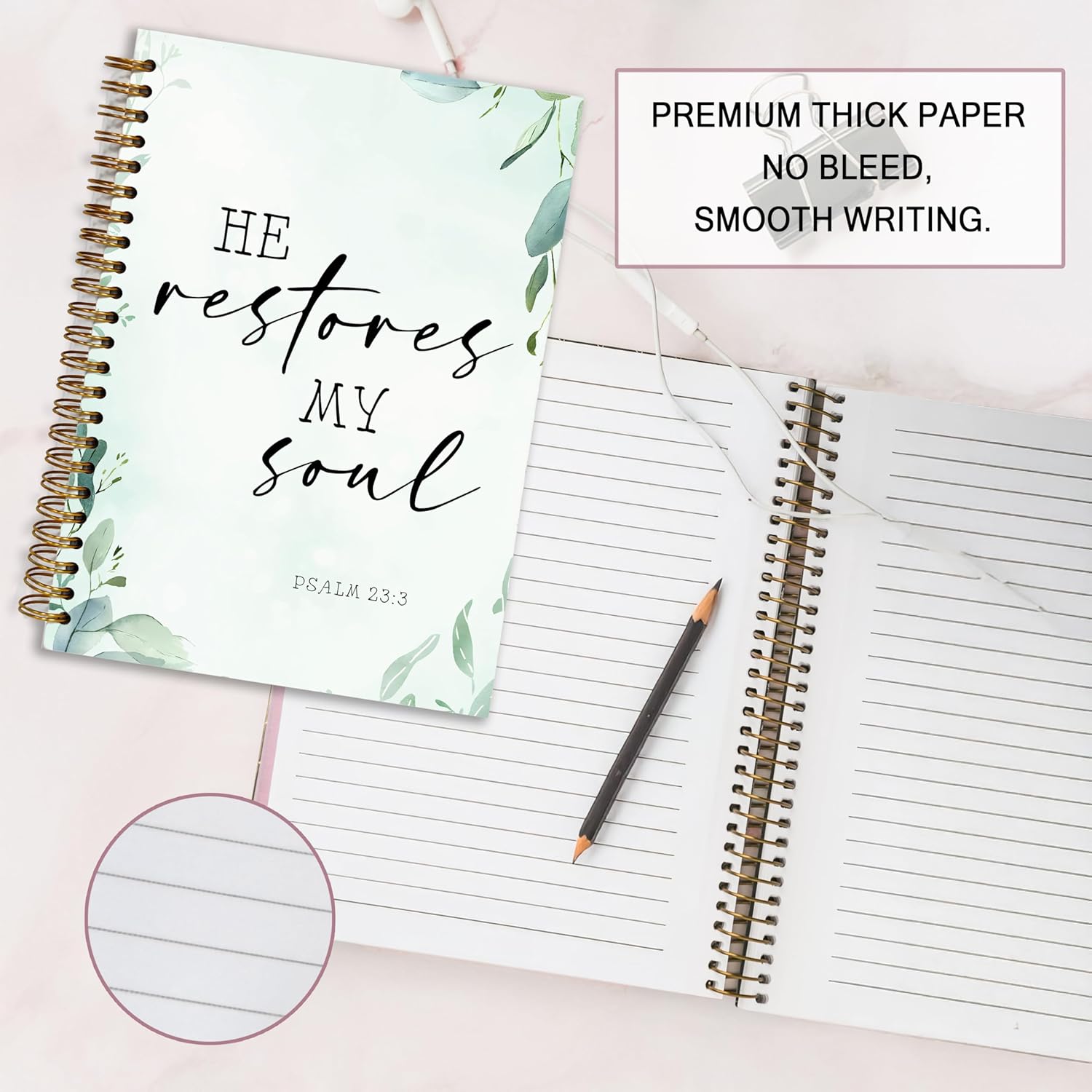 - 2.Bible Journaling Hardcover Spiral Notebook The notebook has a double spiral design, the sturdy spiral binding allows the notebook to lay flat, making it easy to write on both sides of the page. made of thick paper, prevents ink from leaking, safe, easy to write