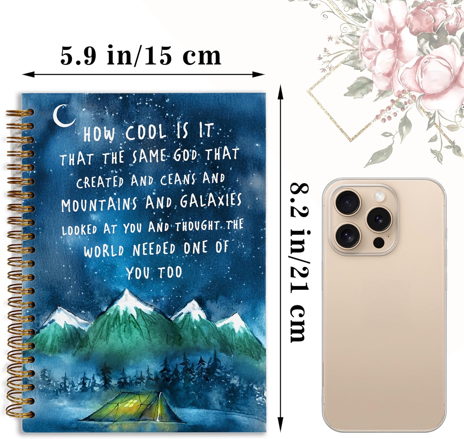 - 2.Bible Journaling Hardcover Spiral Notebook The notebook has a double spiral design, the sturdy spiral binding allows the notebook to lay flat, making it easy to write on both sides of the page. made of thick paper, prevents ink from leaking, safe, easy to write