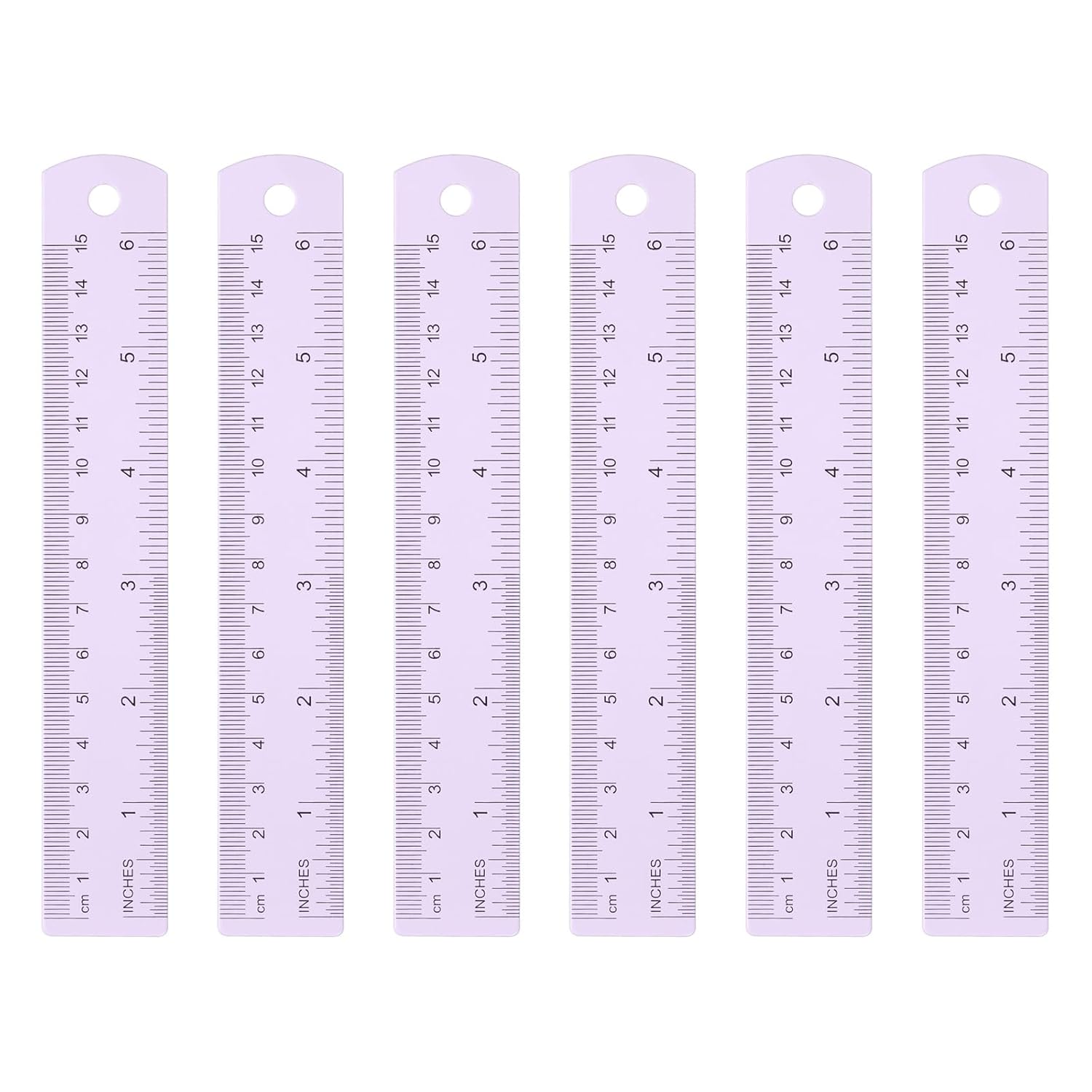 HARFINGTON 6pcs Metal Straight Ruler 15cm Metric SAE Aluminum Alloy Measuring Rulers Scale Tool with Hole for Measure Study Reading Classroom Office, Purple