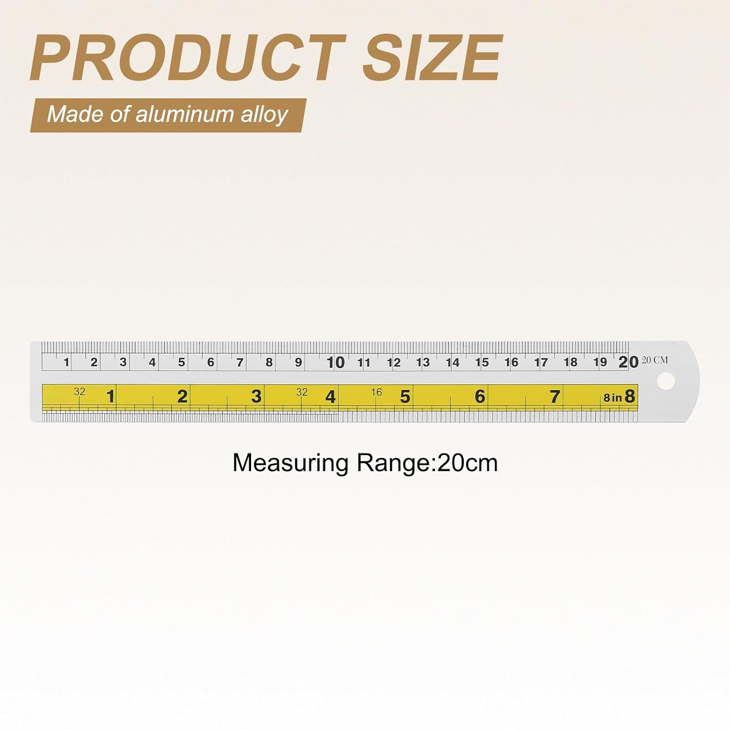 HARFINGTON 2pcs Metal Straight Ruler 20cm Metric SAE Aluminum Alloy Measuring Rulers Scale Tool with Hole for Measure Study Reading Classroom Office, Yellow