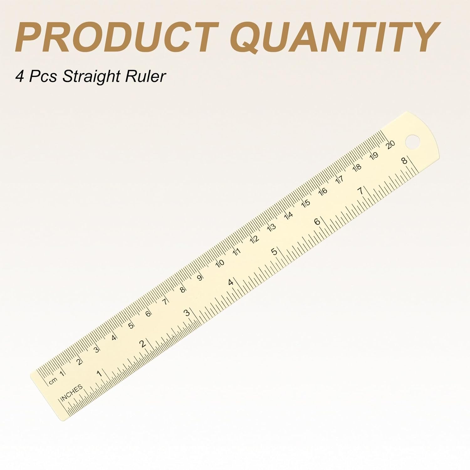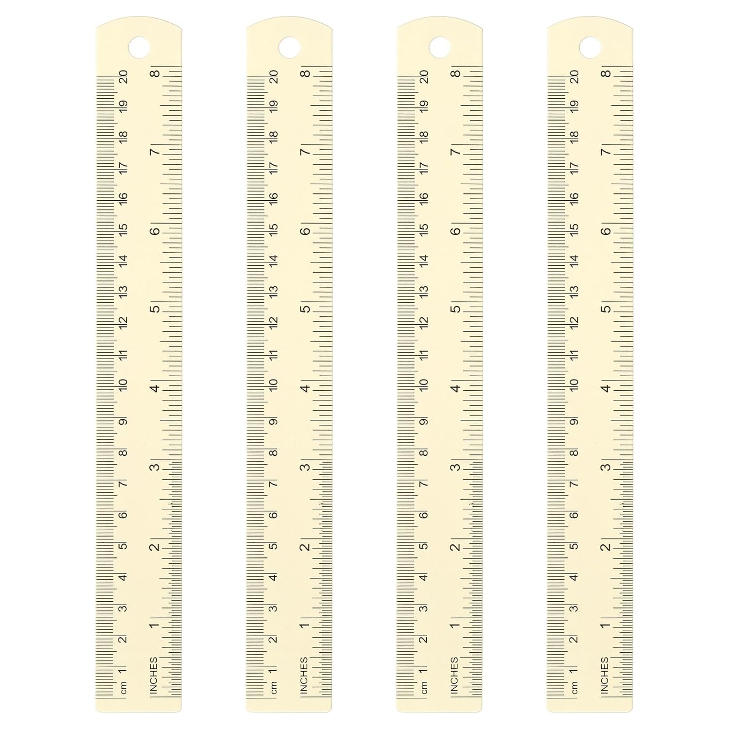 HARFINGTON 4pcs Metal Straight Ruler 20cm Metric SAE Aluminum Alloy Measuring Rulers Scale Tool with Hole for Measure Study Reading Classroom Office, White